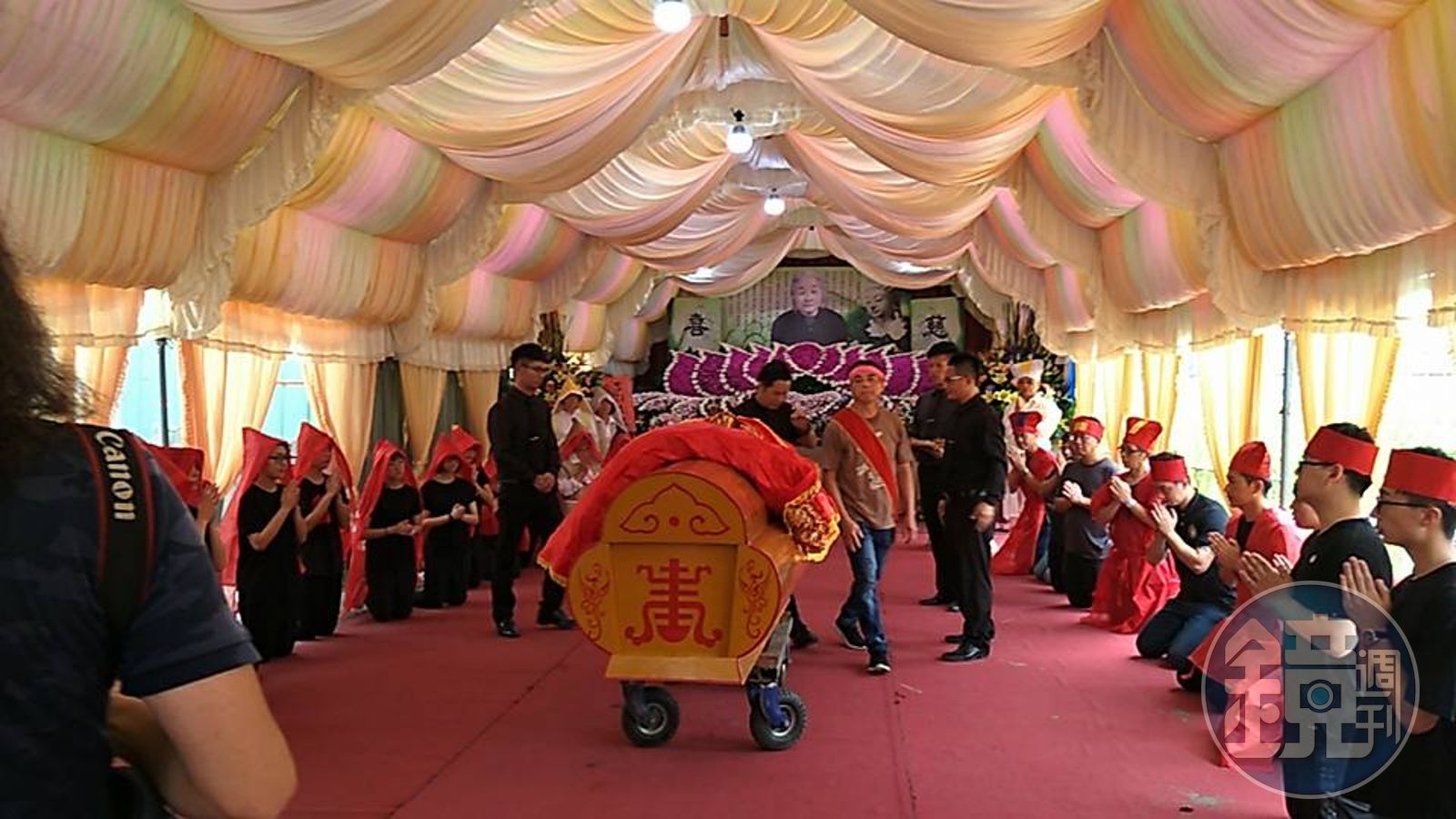 今天上午告別式,家屬相當低調,除了鎮東宮伙伴與鄰居前來幫忙治喪,家屬婉拒信眾花錢舉辦法會。本刊調查,朱秀華頭七時,有一名慈善功德會的蔡姓負責人到靈堂前上香跪拜,表示曾受恩於菜姑,他將集合信眾,斥資300萬元,幫菜姑辦一個超級豪華法會,並布施1,000斤百米,幫助麥寮中低收入戶。