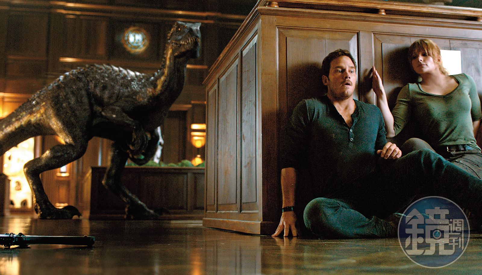 看侏羅紀系列,曾經就像親身走進森林,以恐龍為主的巨型園區占據了整個大銀幕,人處於懸殊的尺度反差,不論劇情,這本身就是童年面對未知世界的意象。《殞落國度》是第一次恐龍不在巨大園區晃蕩衝撞,而是近乎全片都被關在籠子和豪宅監獄,也就是換成恐龍被帶進人類世界,直觀上,少了過往那種壯闊和冒險感。