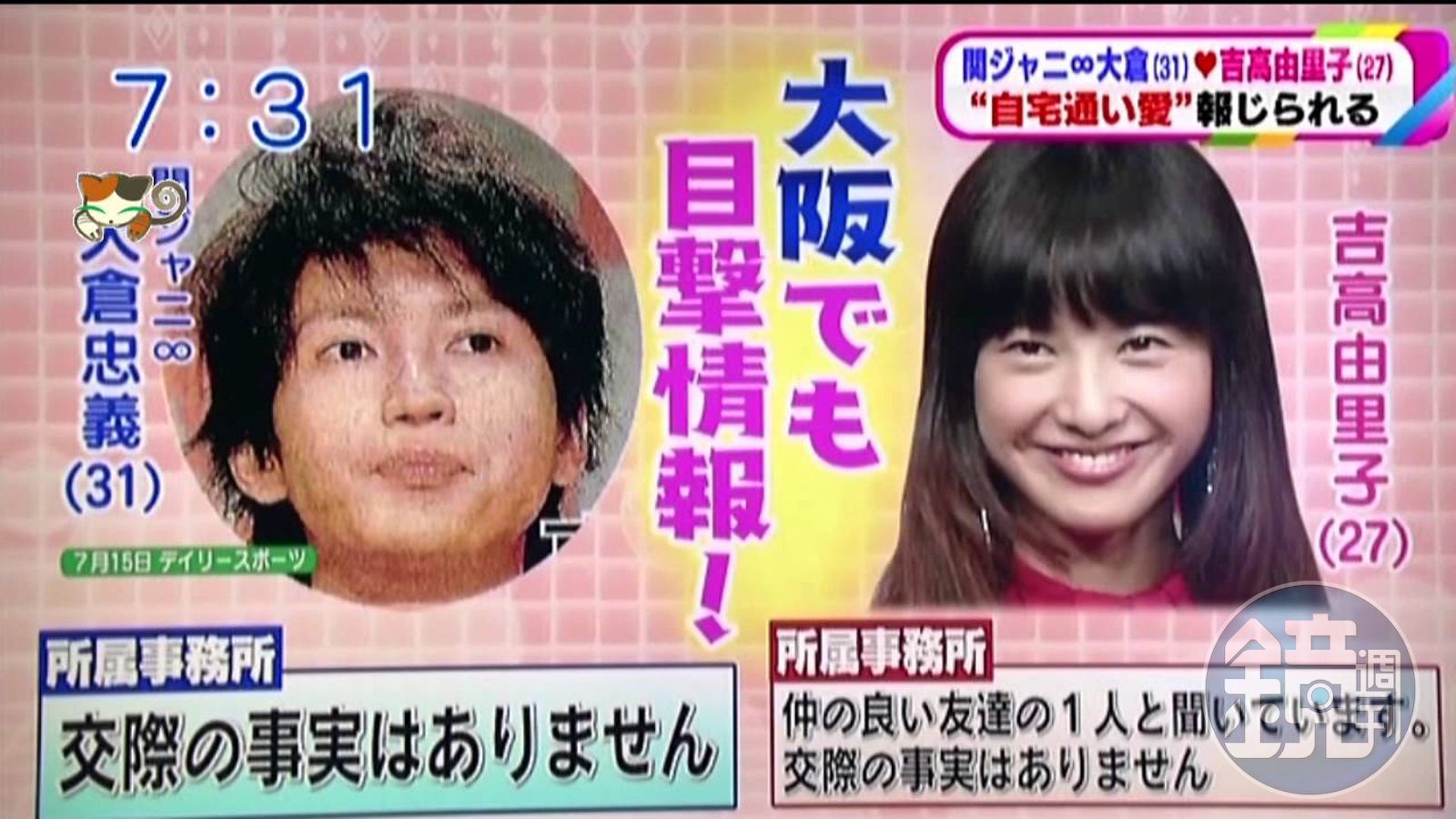 2016年吉高由里子跟大倉忠義被抓包熱戀,雙雙還說謊否認。(翻攝 jonny.click網站)發布時間:2018.06.12 17:13 臺北時間