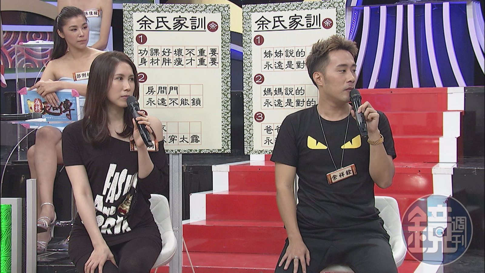 余苑綺表示,媽媽李亞萍不喜歡女孩子褲子穿太短,連在家穿睡褲都不行,「她不喜歡會露出屁股蛋的那種褲子,我剛從加拿大回來時,在家中這樣穿,我媽馬上說不OK,還拿出爸爸的四角褲給我穿。」利菁聽了馬上笑說:「可是妳媽很露耶!」余苑綺也搞笑回應:「所以上面可以露,下面不能露。」