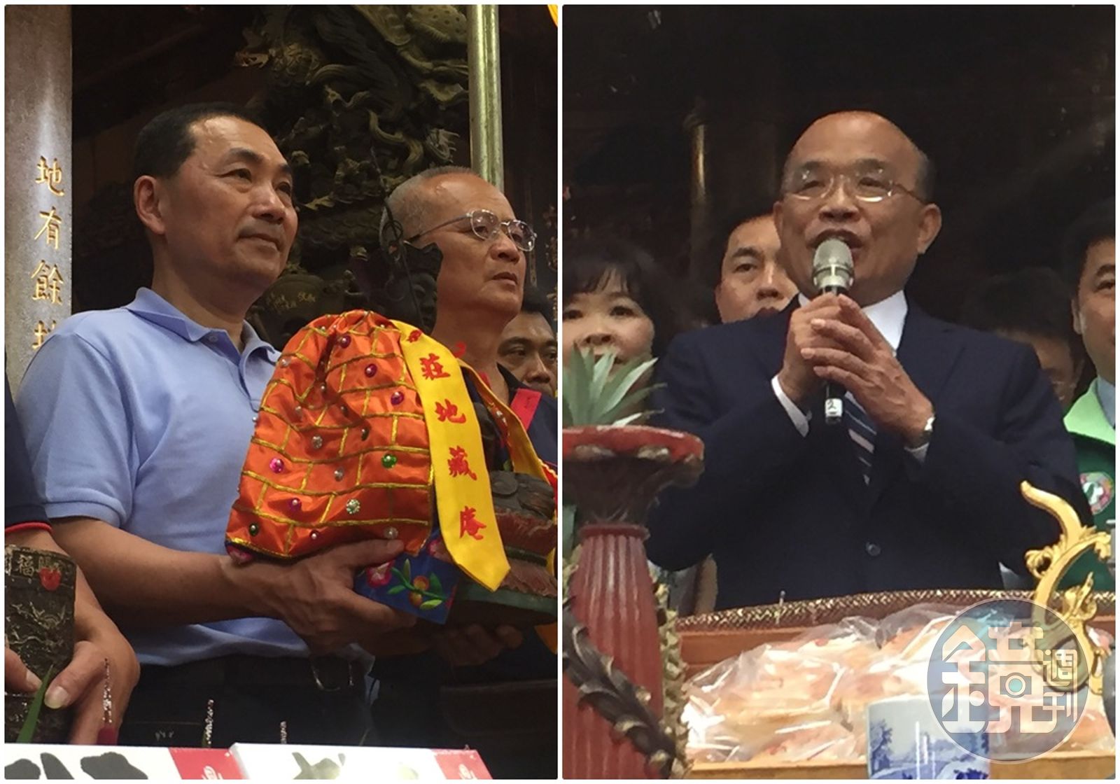 侯友宜尚未離開,蘇貞昌就已到場,雙方幕僚顯得有些緊張,不斷確認2候選人的行蹤,為避免2人強碰,廟方先指引蘇貞昌到貴賓室休息,侯離開後才請蘇入廟上香。