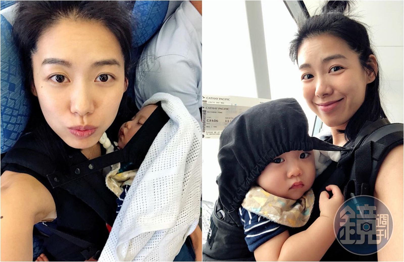 老公還在香港工作,林可彤只好獨自帶兒子Adam 返回台灣,幸好寶寶很乖,機上都在睡覺。(翻攝林可彤臉書)發布時間:2018.06.15 16:33 臺北時間