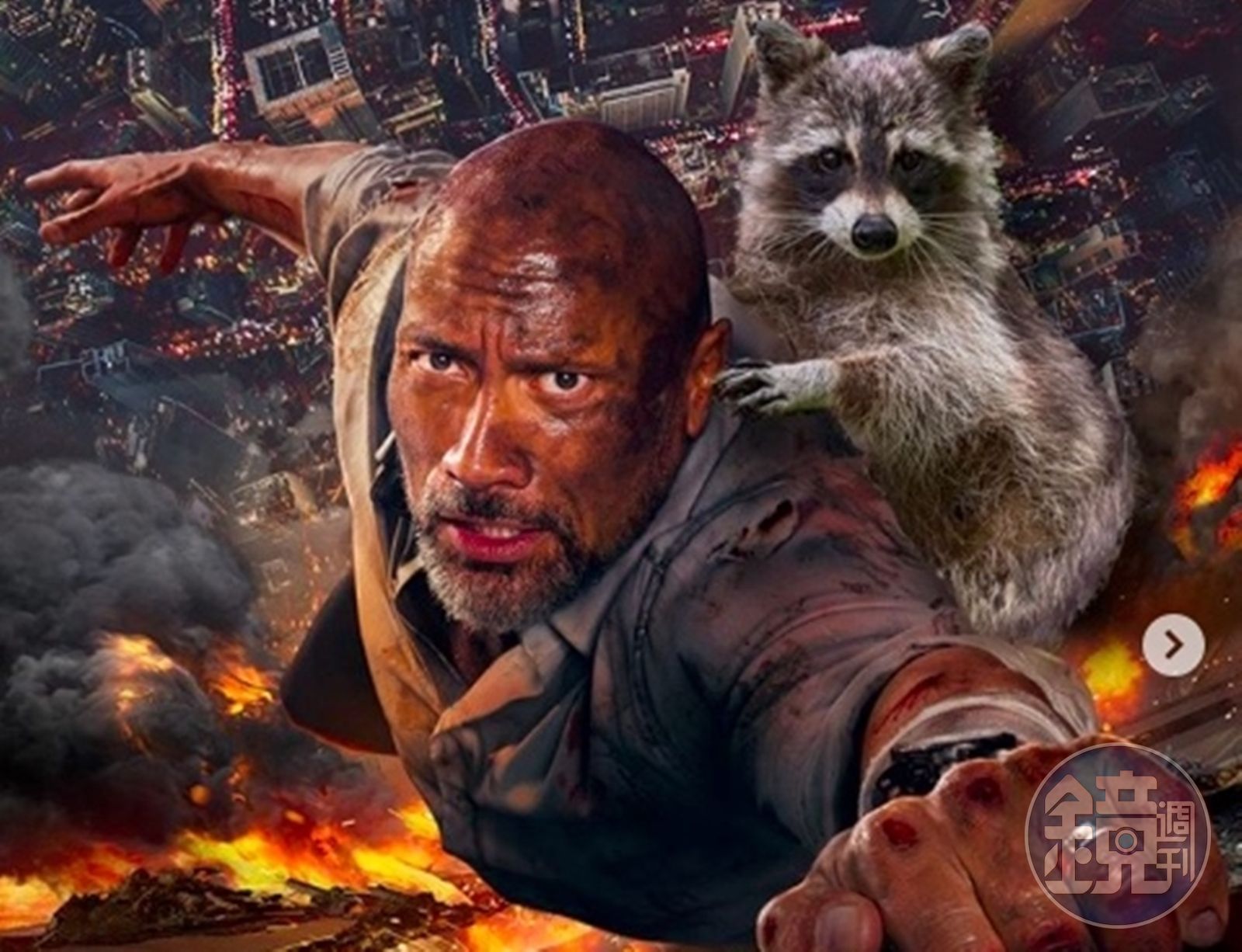 上週美國民眾發現,有一頭浣熊在明尼蘇達州,一座25層的大樓外牆上攀爬,因為大樓沒有陽台,動保人員又擔心開窗捕捉會嚇到小浣熊,只能眼睜睜看著牠掛在外牆。就這樣讓牠爬爬停停整整3天,讓不少明尼蘇達的民眾為牠擔憂地失眠,最後浣熊爬上了屋頂,被動保人員順利捕獲,結束了這場「浣熊爬大樓」的奇遇記。正在宣傳新片《摩天大樓》的巨石強森,立刻把浣熊哏放進來,硬是讓牠出現在電影劇照跟海報上,還說「酸民都說這是合成的」。