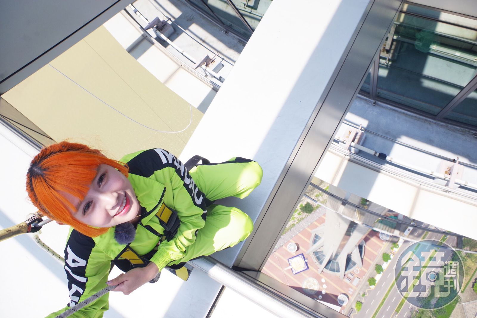 AMOi-AMOi中,MAY挑戰高空彈跳,她說:「跳之前一點都不害怕,在倒數的5秒鐘時,突然想到安全措施會不會做不好掉下去,腦筋一片空白,這真的是很特別的經驗,覺得一輩子一定要挑戰一次,才知道失速墜落是什麼感覺。」