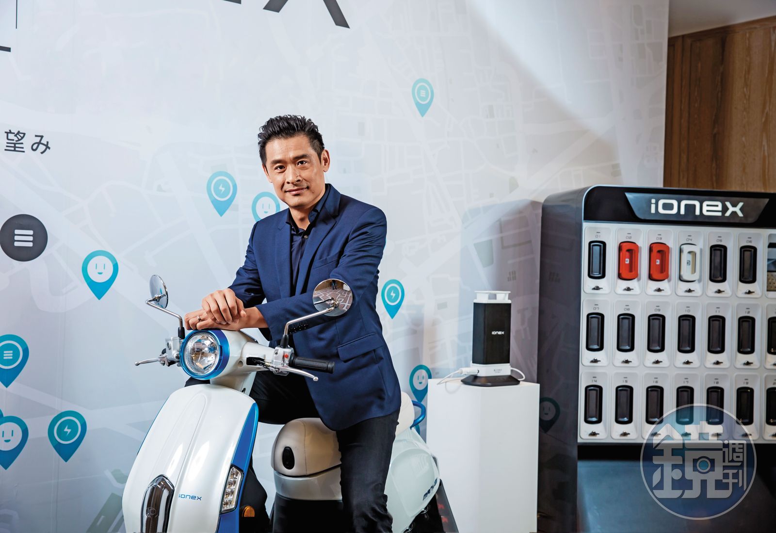 柯勝峯3月先在東京機車展公開Ionex車能網系統,主打可直接在家或在快速充電站接插頭充電,或於能源交換站更換電池的電動機車,且每台車均內建核心電源,即使電池沒電也能再騎10公里。此外,光陽推出僅5公斤的輕量化電池,首創智能感應電池抽取模式,只要以電池底部輕觸踏板上的NFC晶片感應,即可自動開啟電池匣更換電池,最高續航力達200公里。