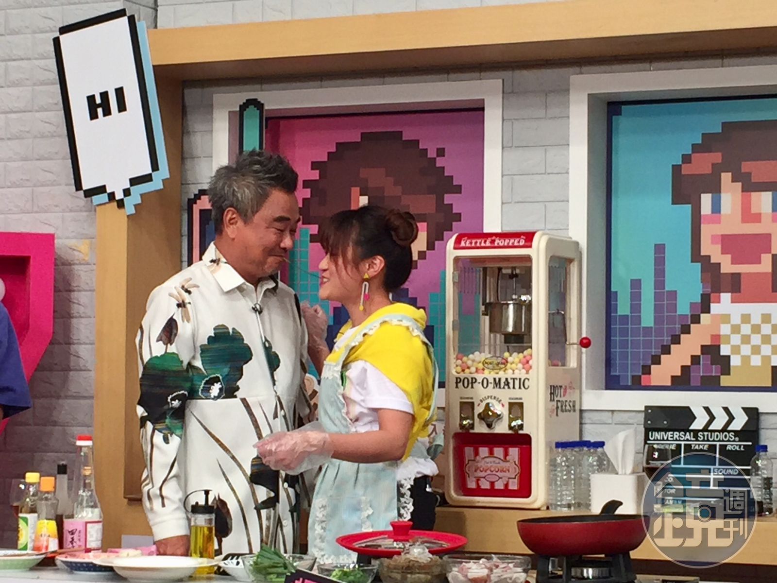 為慶祝陳昇30週年,主持人海芬親自下廚;黃鴻升問陳昇喜歡吃什麼,陳昇坦言比較愛吃麵食,轉頭問海芬:「阿芬,你下麵給我吃好嗎?」說完臉紅害羞猛拉小鬼,海芬說:「好啊,我願意!」 陳昇說自己起雞皮疙瘩了:「我完了,根本不敢看她眼睛!」意外碰上對手了,海芬還故意鬧他猛親暱地叫「昇!你幫我穿圍裙~」 此外,兩道下酒菜是炒蝦子透抽和炒水蓮,陳昇分別和兩位主持人各從兩端共吃一條水蓮,海芬快速逼近昇哥,眼看兩人已經很貼近,聽到旁邊喊:「昇哥是有老婆的喔!」才主動咬斷水蓮。黃鴻升則不介意和昇哥上演BL男男吻。