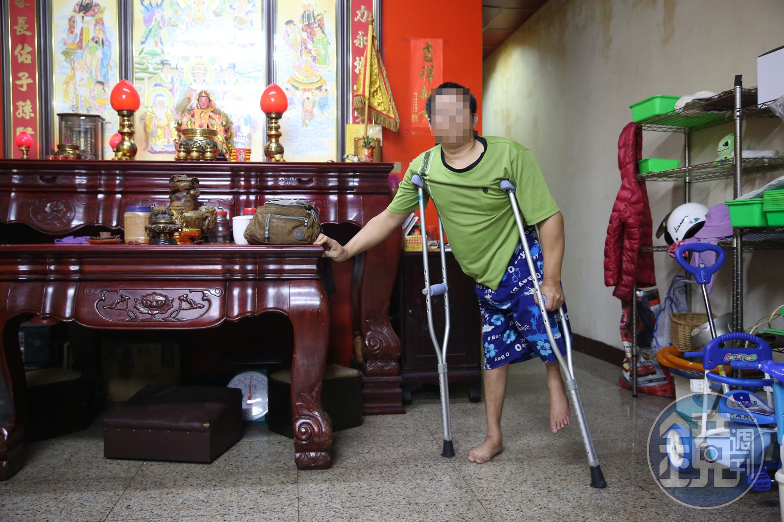 林金龍在記者面前吃力的撐著柺杖行走,真的是舉步維艱,他說:「美X蒂說我抱住她摸奶,還伸手摳她下體,我這身體,行嗎?就算我出手,她一推我就跌倒在地,爬不起來,怎麼『強制』?」