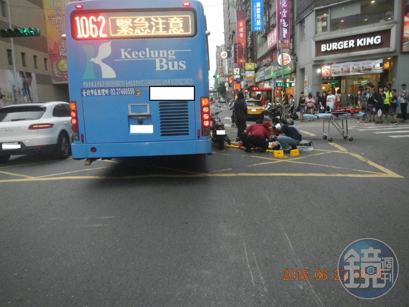 王姓騎士昨日晚間6時載著蔡姓友人,當時正值尖峰時段車流量大,王男與後方計程車司機在變換車道時互按喇叭,運將因此不滿竟從後方逼車追撞王男。 從行車紀錄器畫面可以看到,王男與友人被計程車司機撞倒後,左側車道剛好一台客運經過,差點輾過輾過騎士,所幸騎士往右側摔下,驚險逃過一劫。 警方表示,王男與友人僅受輕傷,雙方互不提告離開現場,但計程車惡意逼車已觸法,最高可罰24,000元。