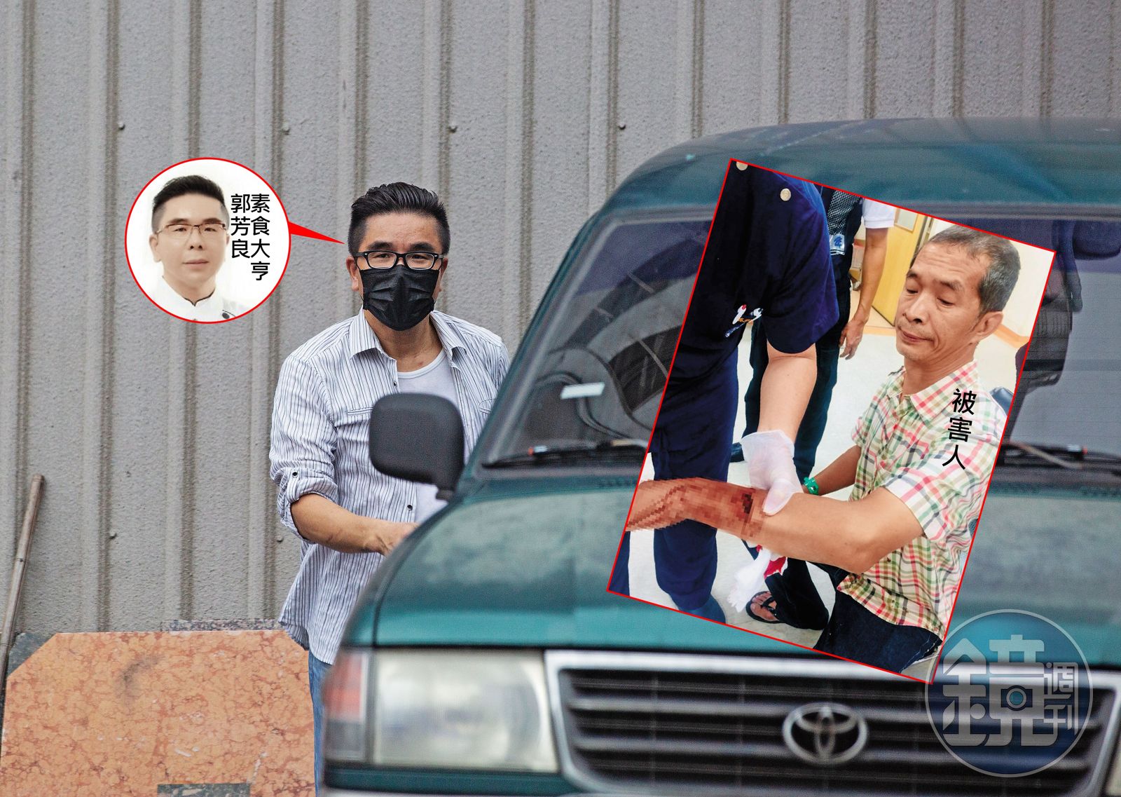 本月4日凌晨5點20分,郭芳良埋伏在地下一樓餐廳,用鐵鍊將出入口鎖起來,等到龔先生與另一名林姓股東準備從廚房後門進入時,郭男手持菜刀,從門後衝出,惡狠狠地砍向低頭正在開鎖的龔先生。林姓股東本能的將好友兼老闆龔男往後拉,伸手阻擋菜刀,導致林姓股東右手肌腱小骨遭砍傷斷裂。