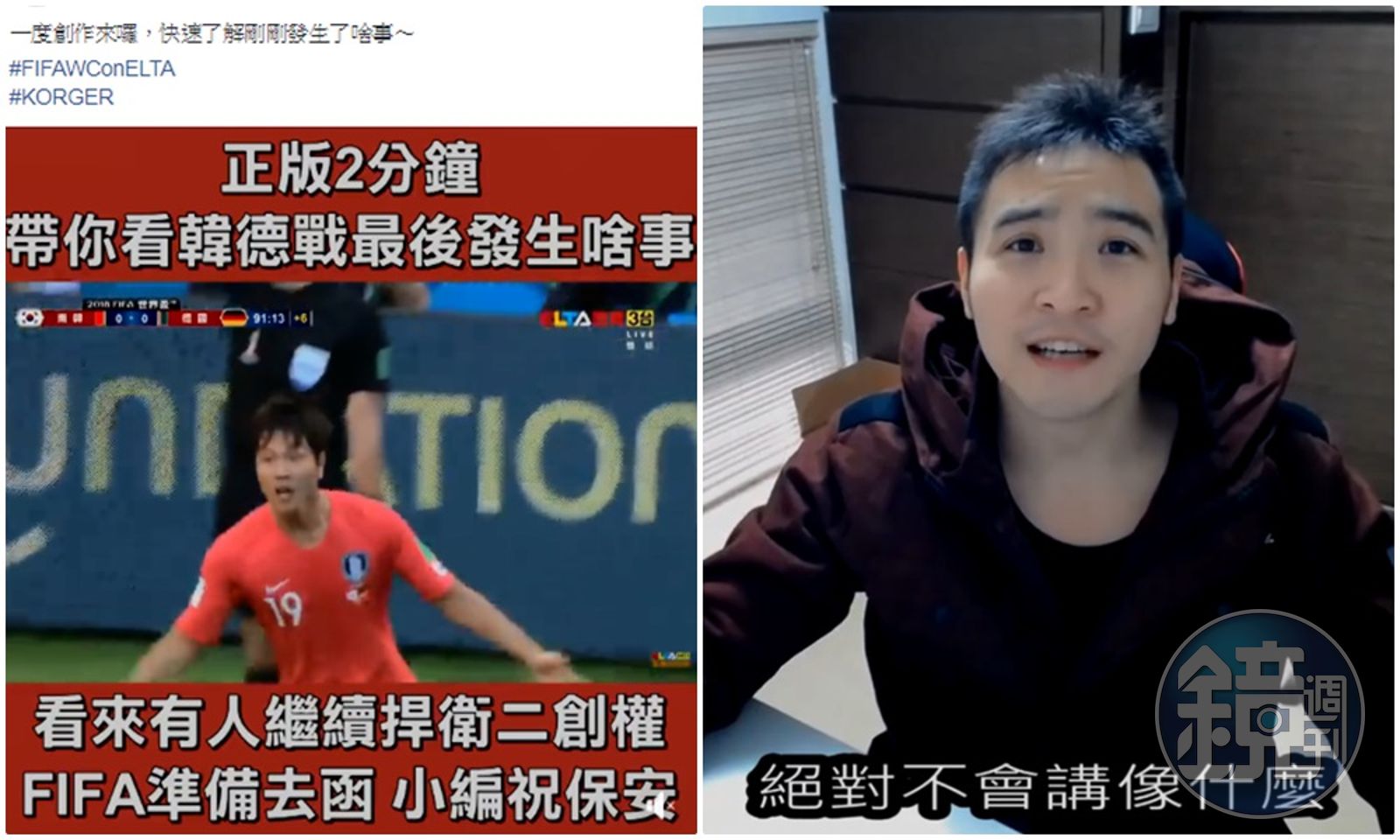 昨夜德國以2:0慘輸南韓,跌破眾人眼鏡,正當舉世崩潰之際,愛爾達體育家族不久即PO出「正版2分鐘 帶你看韓德戰最後發生啥事」,貼文還強調「一度創作來囉」,擺明槓上「二度創作」的谷阿莫,影片更言明「FIFA準備去函」,更開酸「小編祝保安」。而據悉愛爾達已通報國際足球總會FIFA,並發函告知谷阿莫。