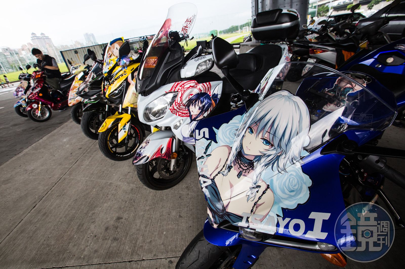 墮羽淜(化名)玩痛車的資歷不算長,大約一年多,卻是很敢「痛」的車主。這次參加車聚,騎到現場的KAWASAKI H2,一台要價128萬;他另外還有一台車花了3、40萬進行改裝。