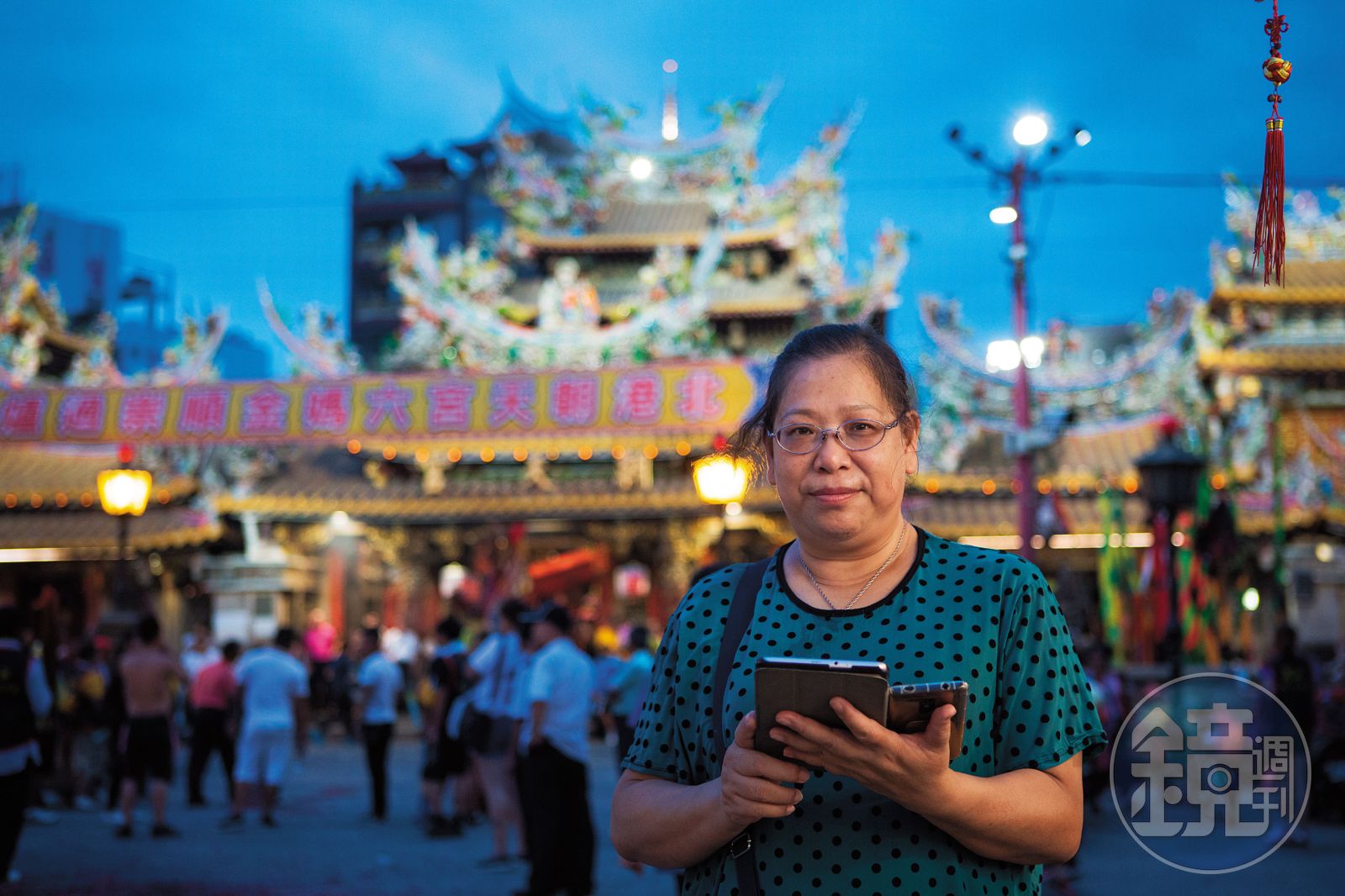 抓寶對她來說,是她在照顧婆婆空檔的喘息。先前她玩了5年的手遊《三國》,但寶可夢帶她走出家門,看見北港許多地方,也認識了許多在地人。「我跟清敏大哥,就是在朝天宮前面抓寶認識。」朝天宮是熱門道館,遊戲規定,占領道館能領取P幣,可用於買道具、補血、領券,還有撒櫻花。小蕙說她沒事就會占道館,附近若有頭目戰,她就騎機車到附近。訪問途中,不斷有香客來詢價、住宿,小蕙也進進出出,一刻閒不下來。小蕙最喜歡的是幸福蛋,因為幸福蛋擅於守塔,時間過去,便可以穩穩領P幣。不知道小蕙是否也覺得自己像顆幸福蛋,守著旅社,儘管收費不高,卻能接應遠道而來的香客。