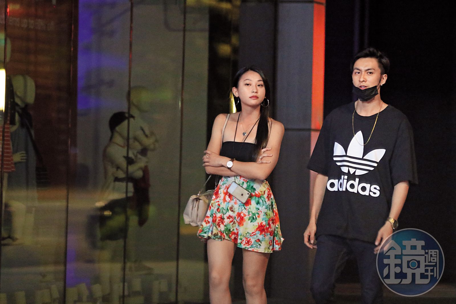 張雁名帶著新妹子一同上計程車,驅車到信義區的夜店,在等待入場時,張雁名趁著四下黑漆漆,一把牽起花裙妹的手,顯見2人關係並不尋常,直至深夜都未再見他們從夜店離開。