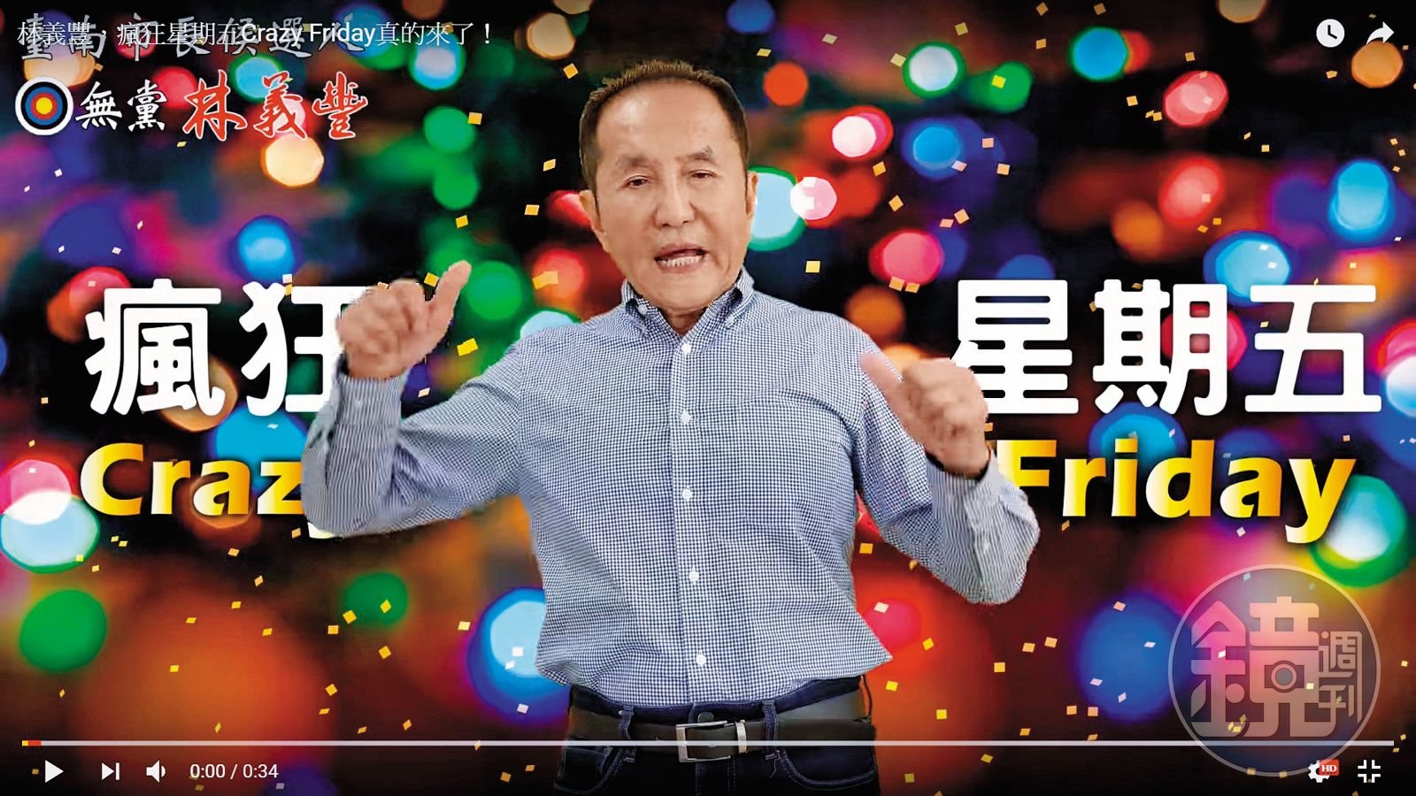 林義豐打算引進西班牙「瘋狂星期五」,開闢娛樂性商店,讓市民在街上就可跳舞,用比基尼女郎、肌肉猛男秀為號召,並廣邀各種表演團體,吸引國內外狂歡客,再創台南經濟與觀光榮景。