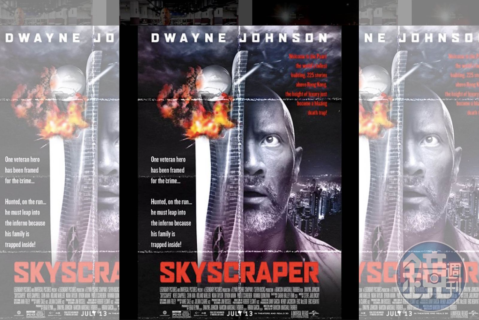巨石強森以往都是猛男形象、頭好壯壯打不怕,但這次扮演的威爾卻是從第一線受傷退下來的前任FBI探員,必須拄著1支義肢衝入火場跳上跳下,讓他的大塊頭變成施展身手的無形負擔,甚至被昆凌扮演的殺手用電擊棒打倒在地,吃盡苦頭。