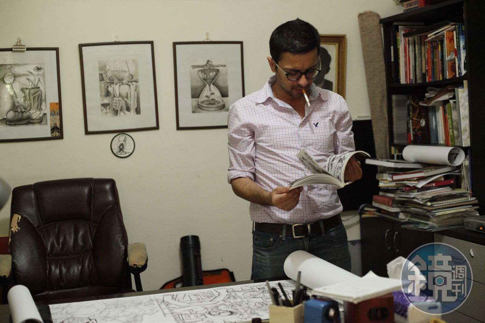 薩巴拿回憶在學期間,曾有些同學也喜愛作畫,但最後沒有持續。他細數幾位人名,最後竟想不起誰仍持續走在這條道路上。「巴勒斯坦沒有漫畫家社群」,他感嘆,因此他持續認識國際朋友,也持續累積自己的小圖書館。移動速度又急又快的他,原來早已習慣緊湊的生活步調──為了營生,他從事每天8小時的校園行政工作,剩下的時間才能拿來作畫。