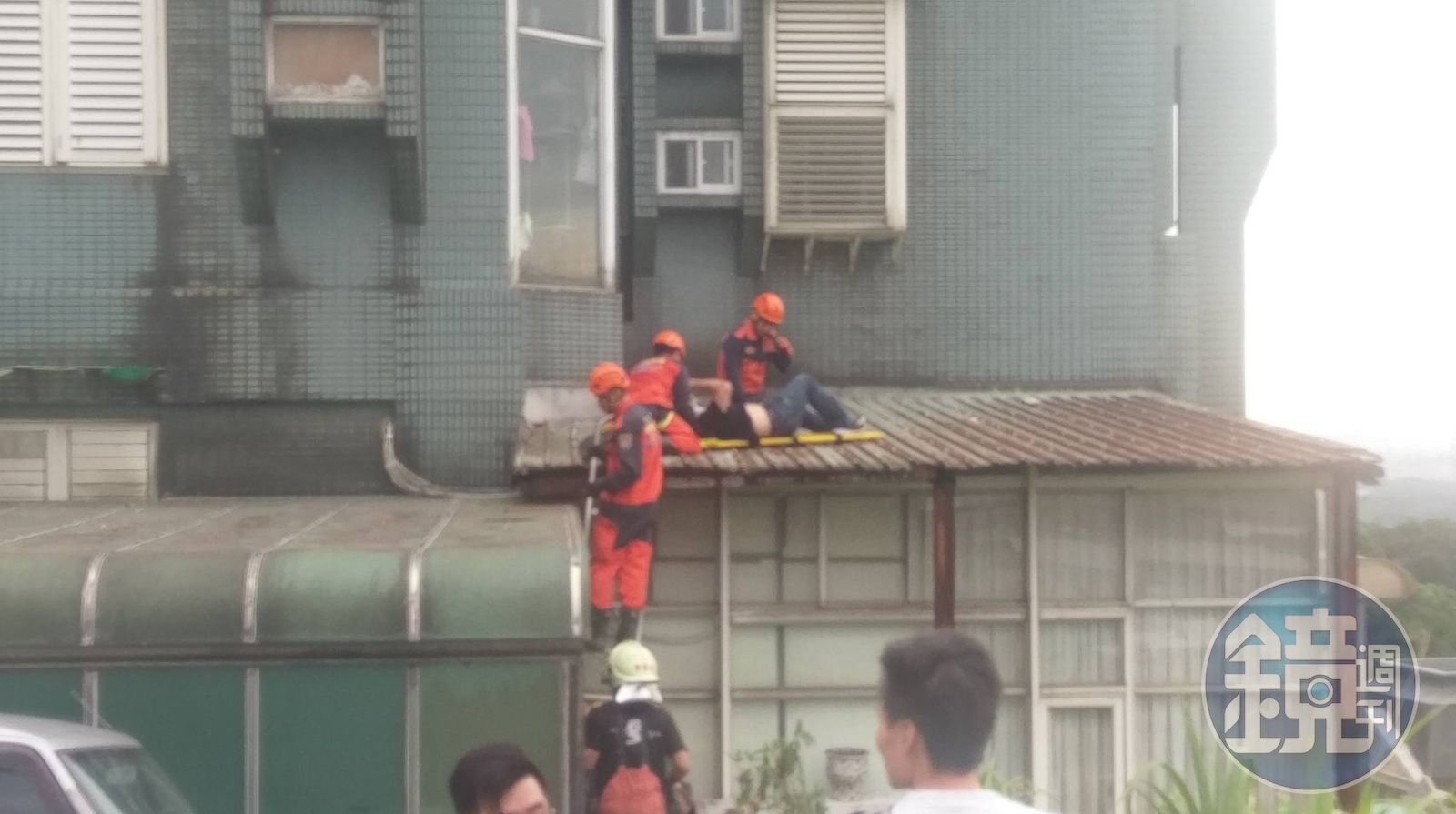陳員試圖將嫌犯拉回屋內,自己卻不慎墜落。(翻攝畫面)發布時間:2018.07.05 18:25 臺北時間