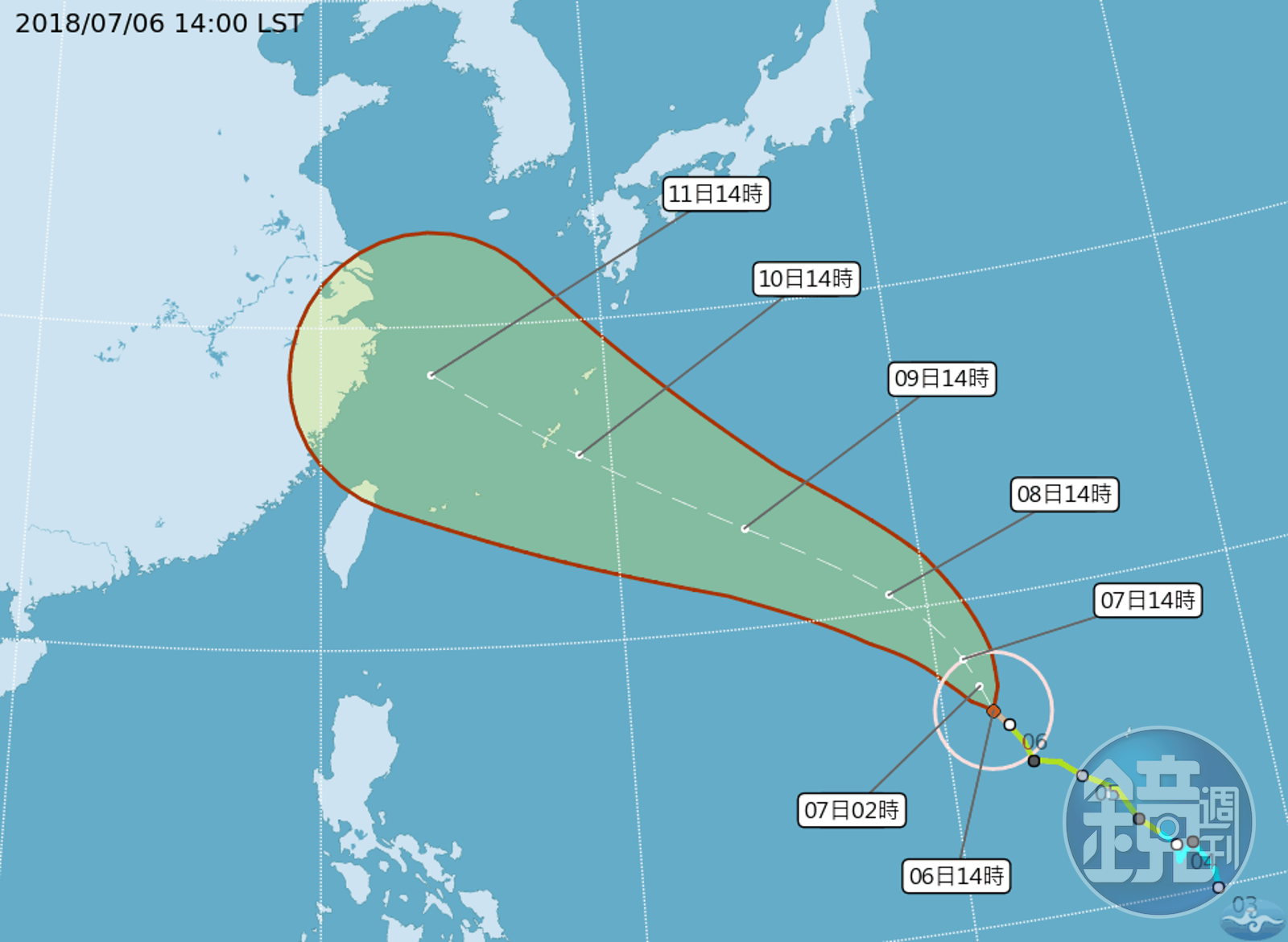 氣象達人彭啟明推測,瑪莉亞將於週日開始會稍微加速,往日本琉球方向接近,預計下週二、三時通過琉球,大約在那霸和宮古島間通過機會最高,往上海方向接近北上,影響中國東岸,從目前的趨勢來看,應該不會直接侵襲台灣。