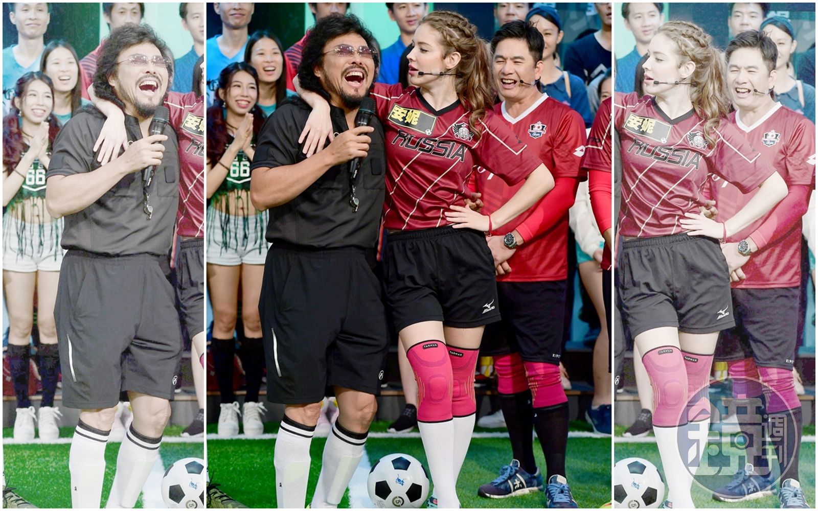 樂不可支的張菲當即賞了紅隊一張紅牌,紅隊的安妮見狀馬上嬌喊:「菲哥不公平!」率領熊熊、佩佩等人上前狂摸、狂蹭,甚至襲擊張菲的鼠蹊部,讓眾人驚呼:「菲哥的鼠蹊部失守啦!」