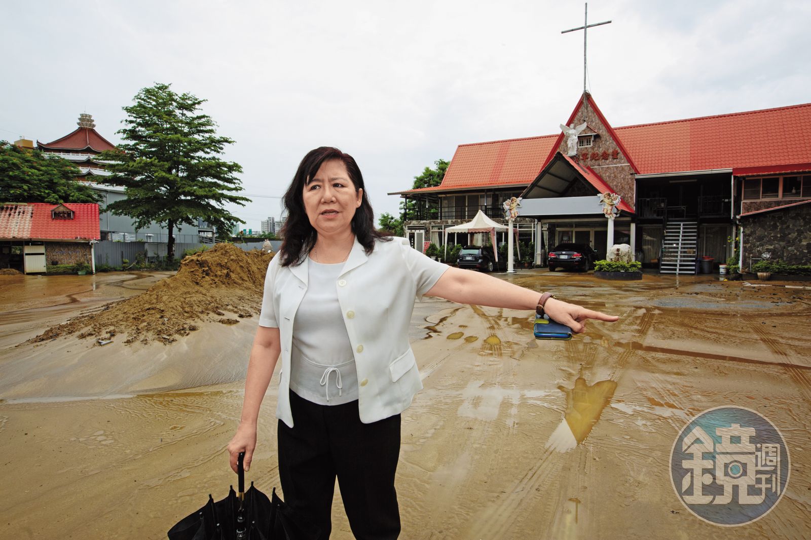 萬姓業者看著數十年的心血全都毀了,不禁悲從中來的說:「玫瑰園在這裡已經十幾年,經歷颱風或暴雨都不曾淹水或是土石流,最近因為遷葬的關係,才下幾天雨,變成這樣景象,怎能不難過。」