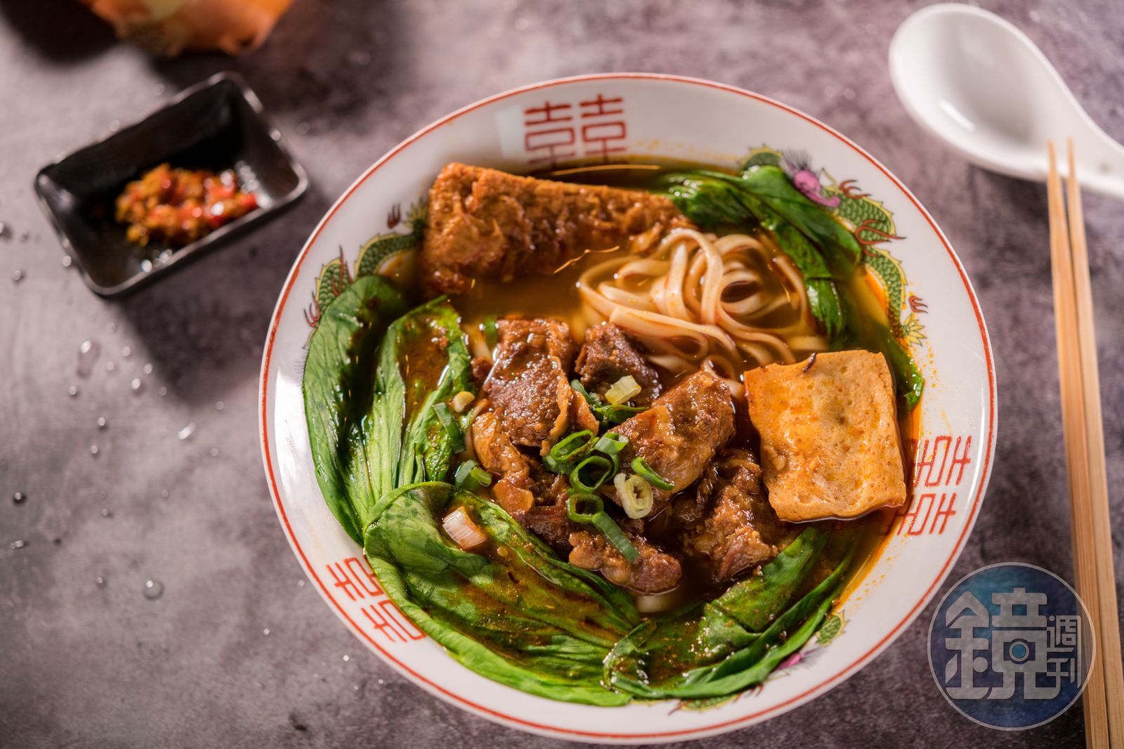 時寓這個難以定義的空間,是老闆曾文佑(Joel)和張佩華轉業的新生活。招牌「來金清燉牛肉麵」以Joel的媽媽名字命名,使用澳洲草飼牛,牛肉經過濕式熟成,湯頭加入洋蔥、蘋果、高麗菜、玉米等蔬果,與牛腩、牛骨與12種中藥材熬煮。「來金本人」不定期會進廚房,親自確認湯頭品質。張佩華笑說:「有粉絲客人見到難得北上的婆婆時喊說,啊,是來金本人。」媽媽的味道永遠都會照顧孩子。