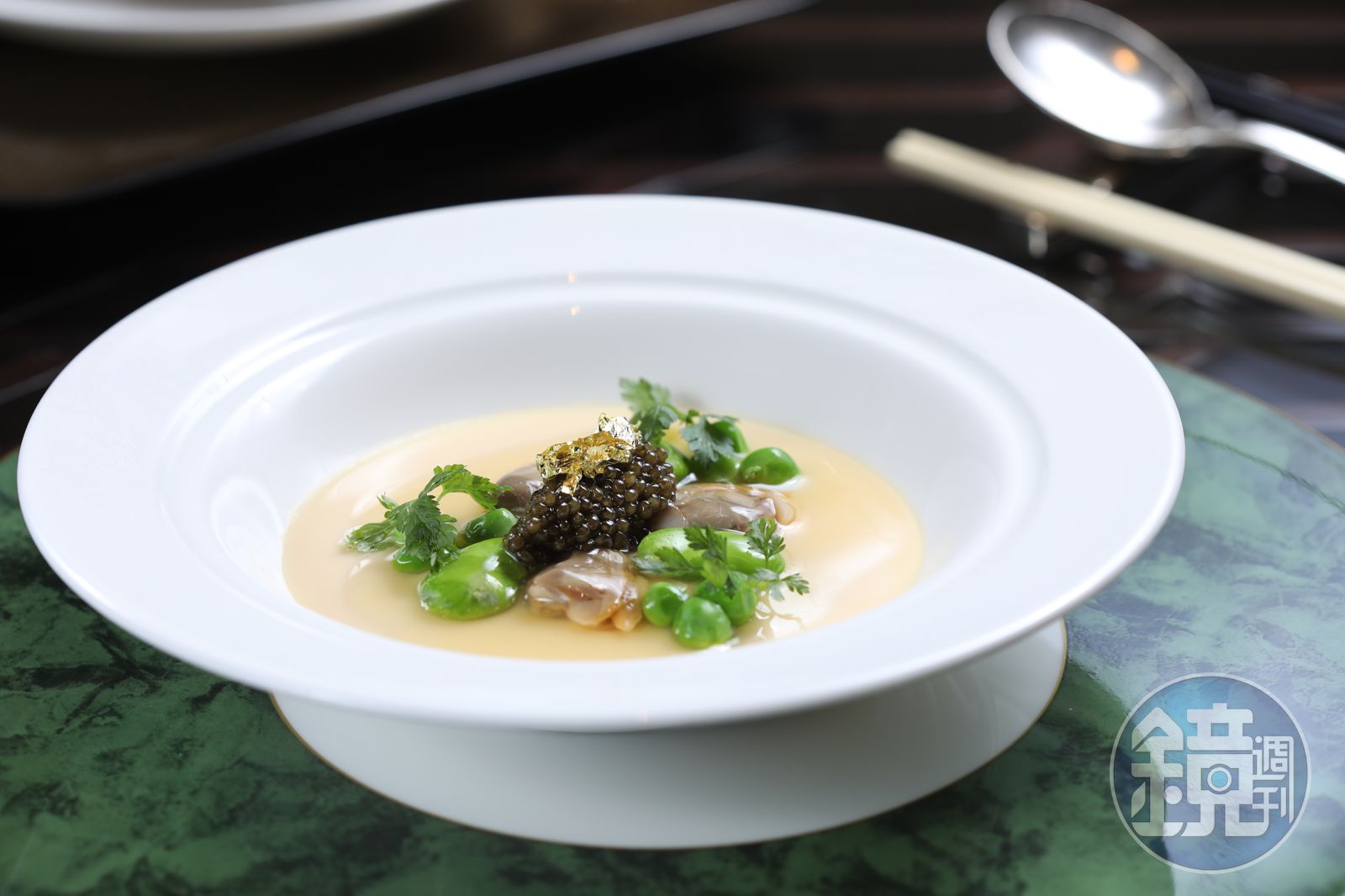 李森用清、鮮、嫩、滑、爽、香六個字來概括他對菜色的風味要求,除此之外,色彩、鑊氣、節令感也不可或缺,夏秋求清淡、春冬重濃郁。於是,剛剛在市場見到的蠶豆,拿來蒸蛋再綴上魚子醬,酥炸生蠔淋上粵式調味,潮州滷水豆腐配上鵝肝,無不讓人吃得拍案叫絕。