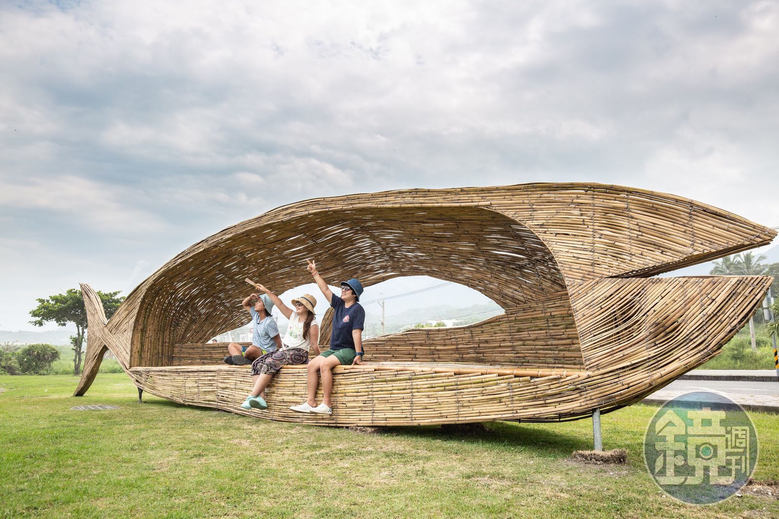 遊客中心草地上,阿美族藝術家拉黑子.達立夫的《島嶼之影》,使用海洋廢棄物如漁線、尼龍繩,和整修時的鋼筋,塑造成人形與島嶼。線條纏繞出的人形,勾勒出深邃的島嶼陣痛,海洋之於台灣這座島嶼,是大地的母親,卻也是傷口。