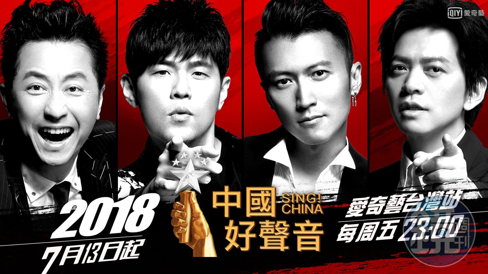 《中國好聲音》每週五於愛奇藝台灣站首播,全新一季導師群超吸睛,除了熟面孔的庾澄慶、周杰倫,還找來音樂詩人李建及謝霆鋒助陣。(愛奇藝台灣站提供)發布時間:2018.07.13 20:16 臺北時間