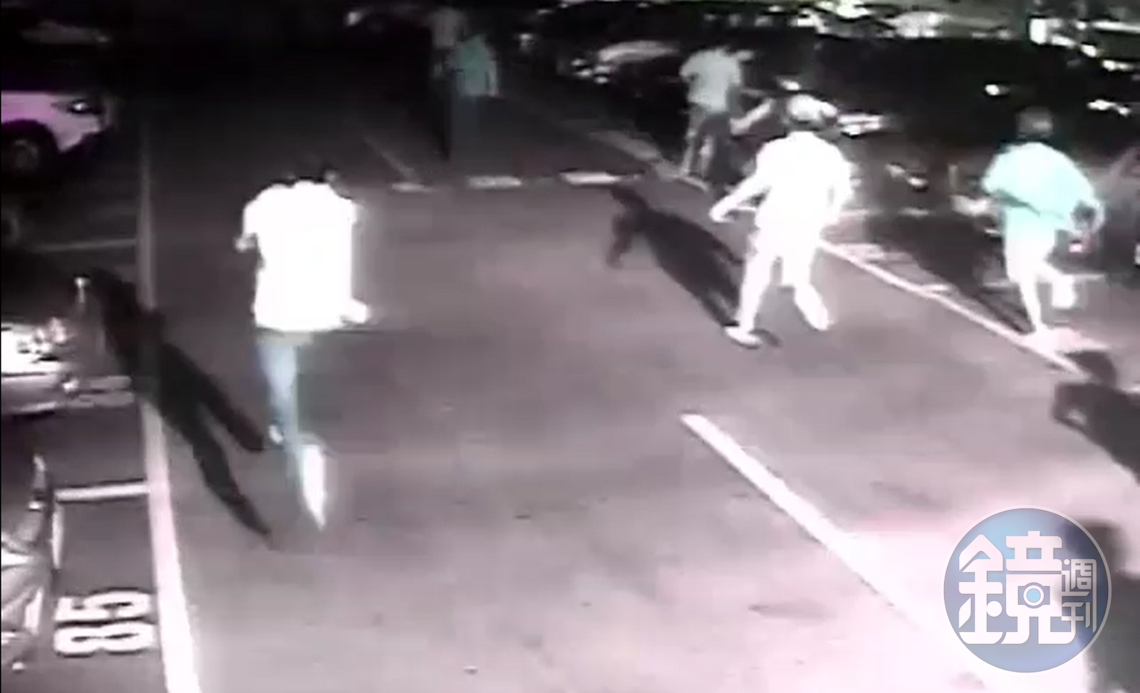 二殯今(17)日凌晨驚傳槍響,監視器錄下現場多台車輛,且將近20人群聚,並且疑似開槍傷及民眾車輛。(警方提供)發布時間:2018.07.17 15:40 臺北時間