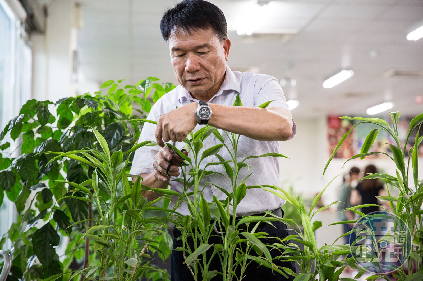 受訪結束,徐和森又拿起剪刀美化辦公室植栽,也許唯有此時,才是他上班整天下來,最放鬆的時刻。
