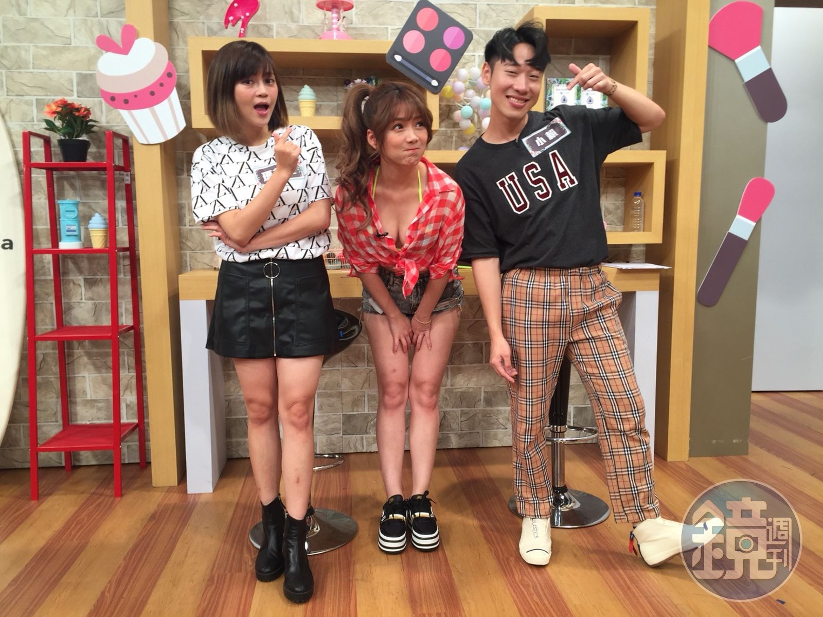 主持人解婕翎面對4位直播主的傲人身材,簡直歎為觀止,直呼還以為走錯棚了,她自己服裝上也暗藏心機,半透明格紋襯衫裡暗藏著比基尼,事業線若隱若現。