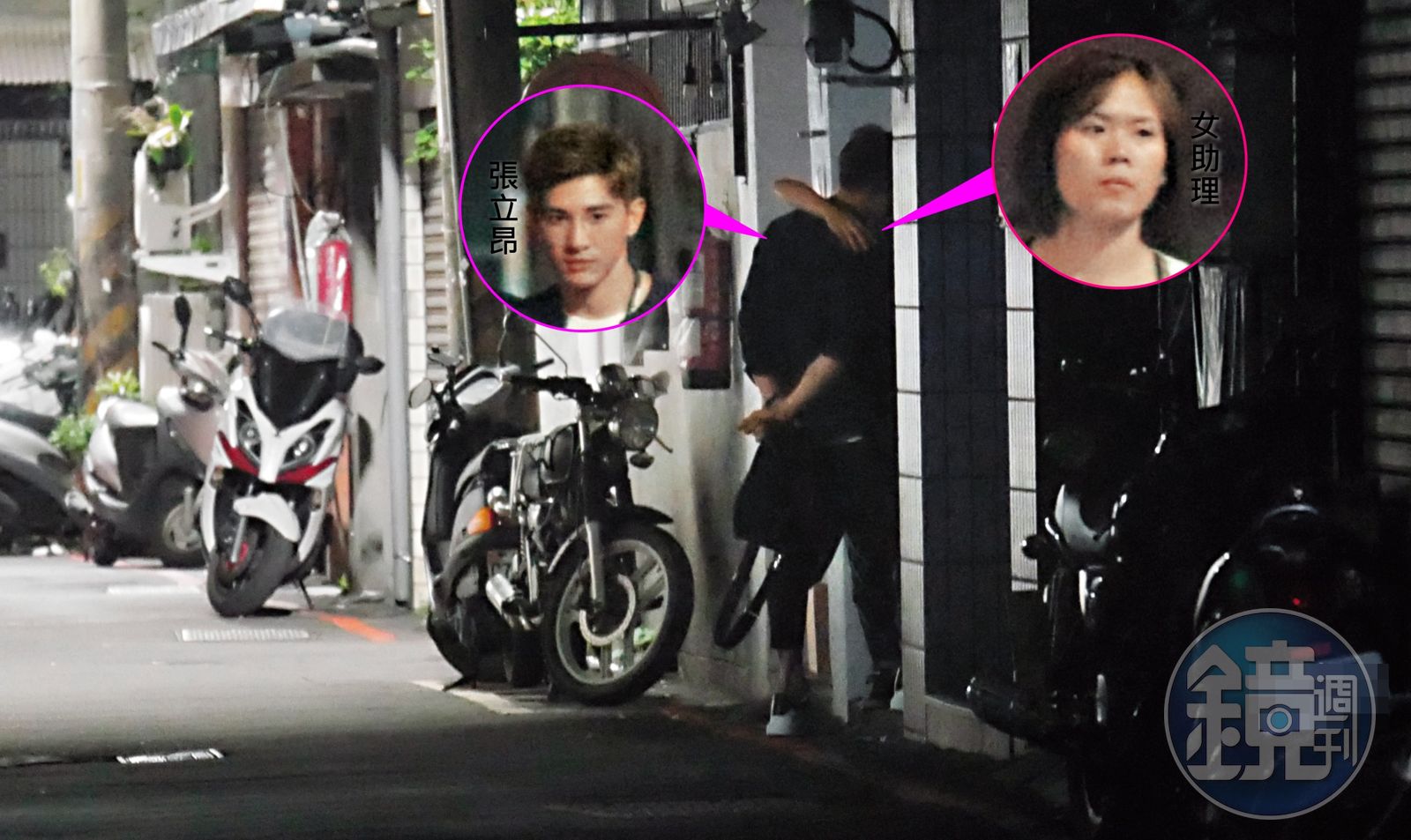 沒想到走進家門前的巷子,感覺有點茫的張立昂,雖然還能正常行走,但開始跟女助理東倒西歪了起來,先是一陣手來腳來、笑鬧,然後開始拉拉扯扯,兩具肉體後來愈靠愈近,最後糾纏得非常緊密無縫。