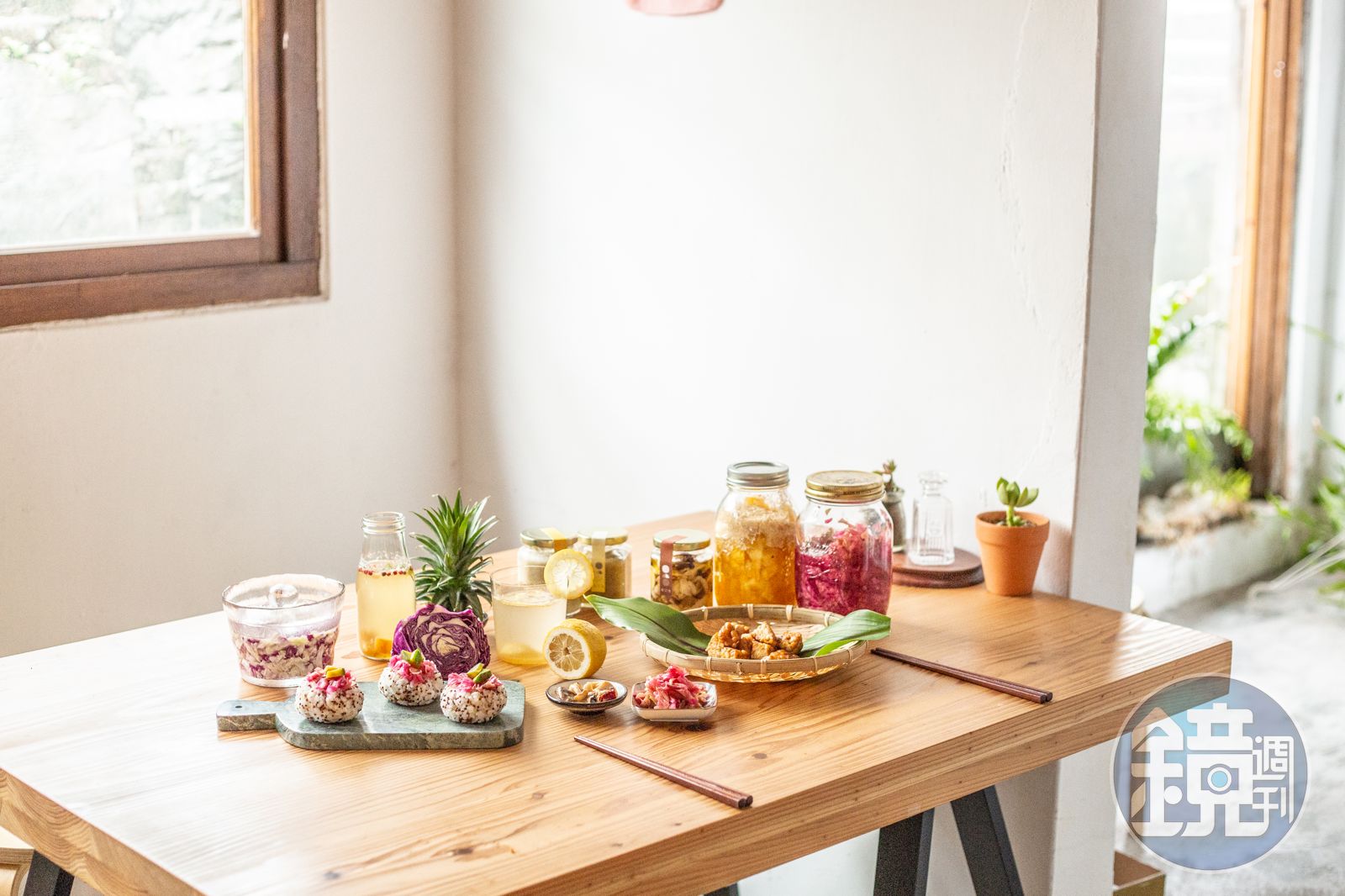 「台灣四季都有富饒物產,像夏季盛產的鳳梨、荔枝等水果,透過發酵可以延長島嶼的果實風味,我們封存味道,就不怕量產崩盤,是愛護農友和珍惜食物的料理練習。」Sharon還說:「發酵之神還會贈予意外的禮物,像是冬天時我們製作了幾百顆大白菜泡菜,其中有幾顆跑出了荔枝香氣,大自然的轉化力量好神奇。」