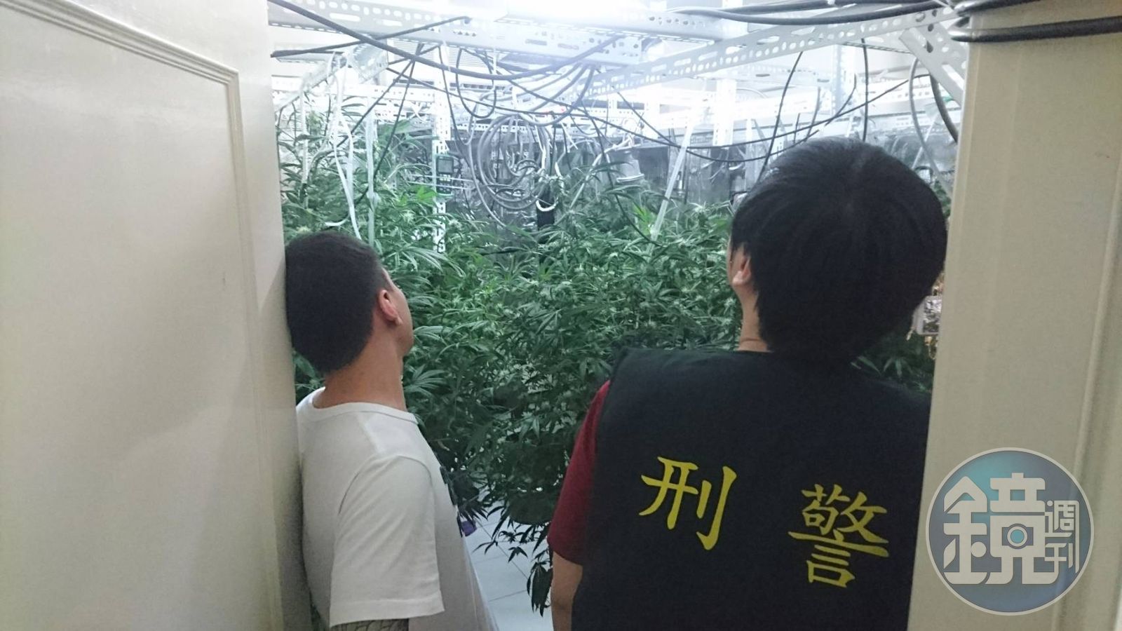 7月31日下午6點,刑事局偵四大隊第一隊,與新莊分局、花蓮縣刑大等單位共組的專案小組,埋伏在新北市新店區的一棟透天別墅外,確認一名陳姓男子進入後,隨即衝進屋內控制陳嫌,當場查獲大麻活株24株、大麻幼株2桶、乾燥大麻花300餘公克、真空封膜機、包裝袋、烘乾設備等贓證物。