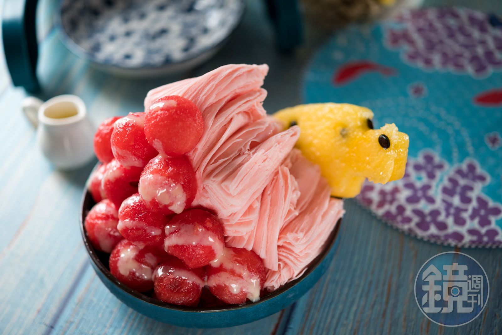 好比點播冠軍「西瓜牛奶小涼球」,為求品質,店家每2天親自到三重果菜市場挑西瓜,從削皮打汁到做成冰磚,至少得花上5小時,換來的是自然瓜香和果甜味,搭配挖成球狀的紅肉西瓜和冰棒狀的黃肉西瓜,光看就消暑,吃進嘴裡、涼進心裡。