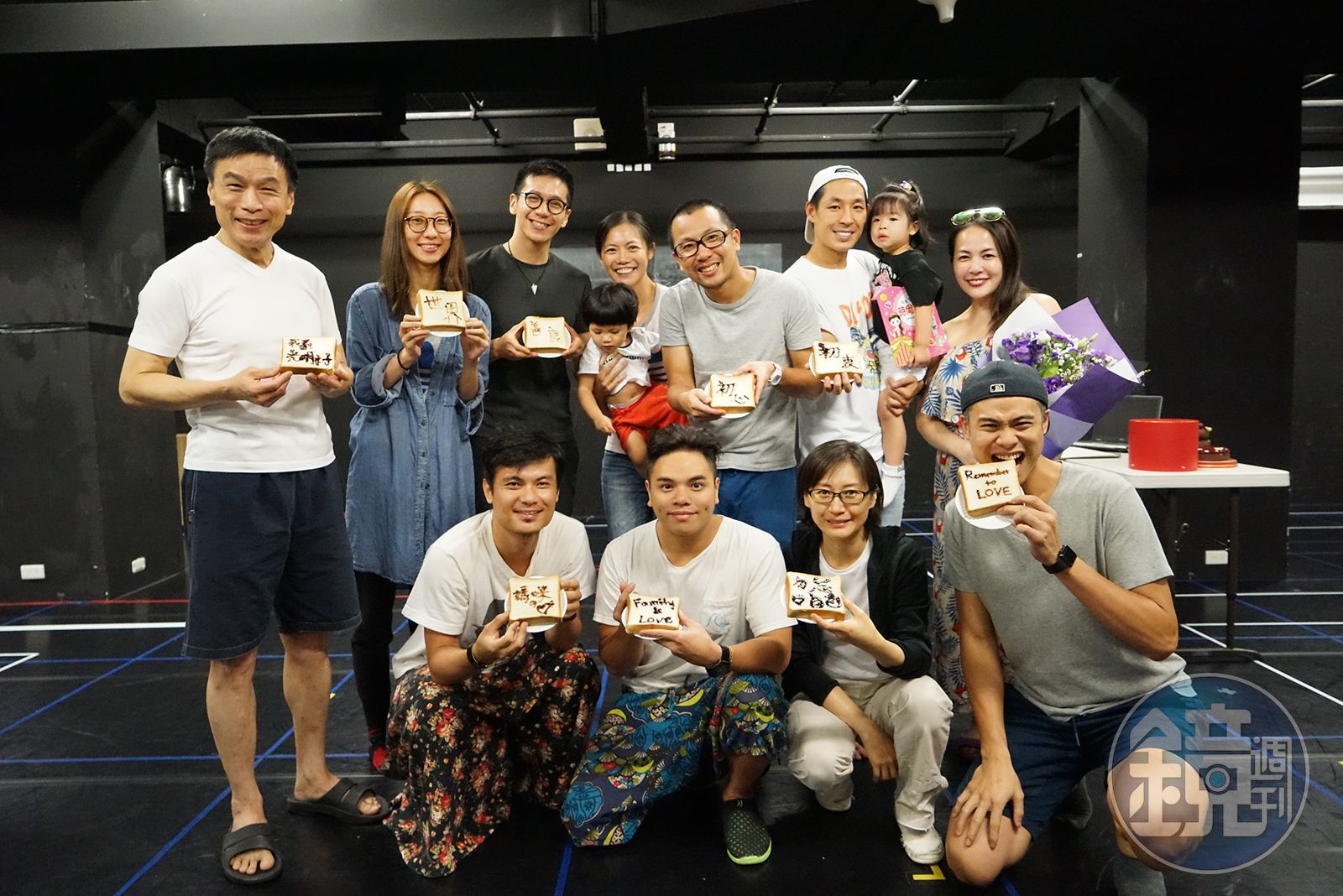 現場也為已升格為人父的編導黃致凱與藍鈞天慶祝,劇團事先安排編導黃致凱老婆帶著一歲半的小兒子、藍鈞天老婆Fiona帶著兩歲女兒到排練場給爸爸驚喜探班,有女萬事足的藍鈞天則笑稱「比起兒子,我更喜歡女兒。」兩歲的女兒第一次來探班,陌生環境讓她不安哭了起來。