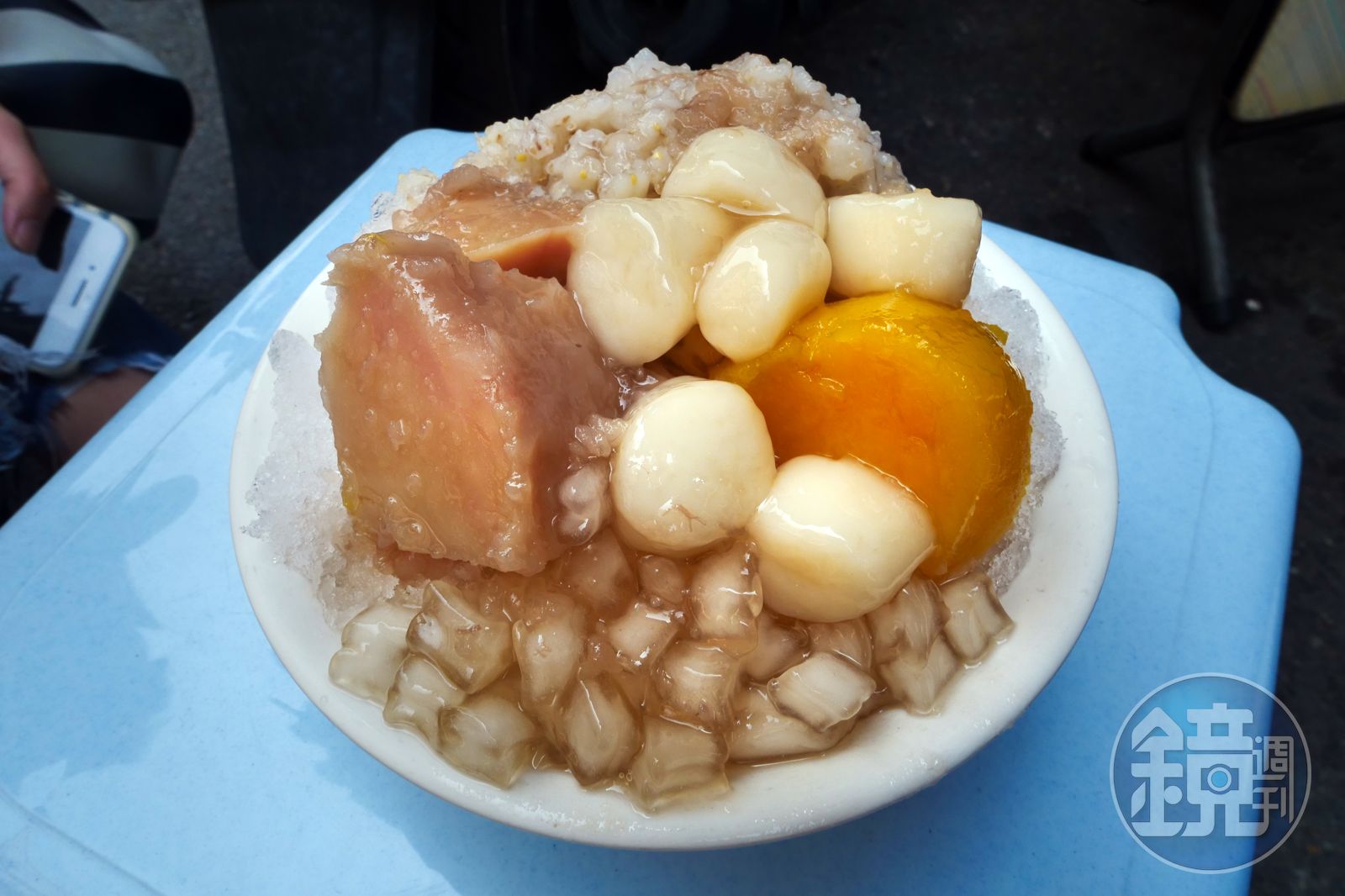 「我曾經點過一碗全部都是這種粉類的配料,最後再淋上他們每天現熬的糖蜜鳳梨醬,酸甜純粹。」李姝慧說。林敬堯則是「澱粉控」,地瓜、芋頭、燕麥、粉角加湯圓,最後還要求老闆不要淋糖水,改淋濃郁香甜的蜜芋頭湯。