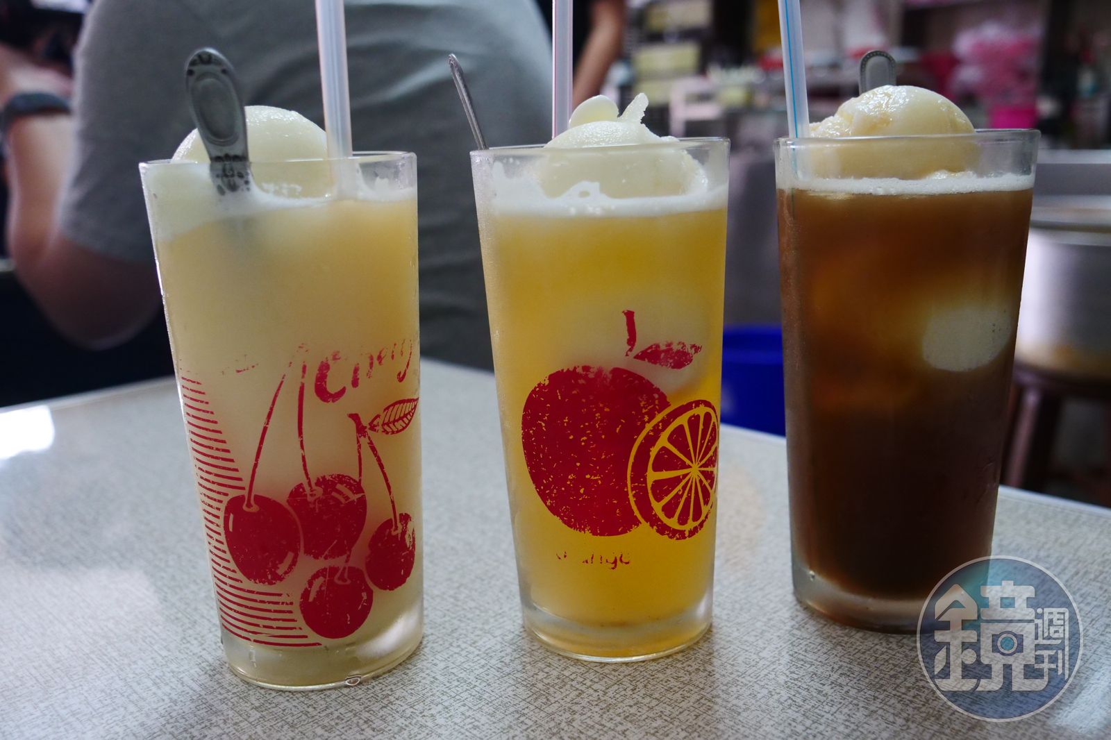 花生冰使用的不是熬得綿密的軟仁,而是酥酥脆脆的硬花生米,鹹甜混搭,口味獨特。熱愛古早味的不會忘了點桔子汁,淋上煉乳再加冰,酸甜酸甜,這就是少女時代的滋味啊!