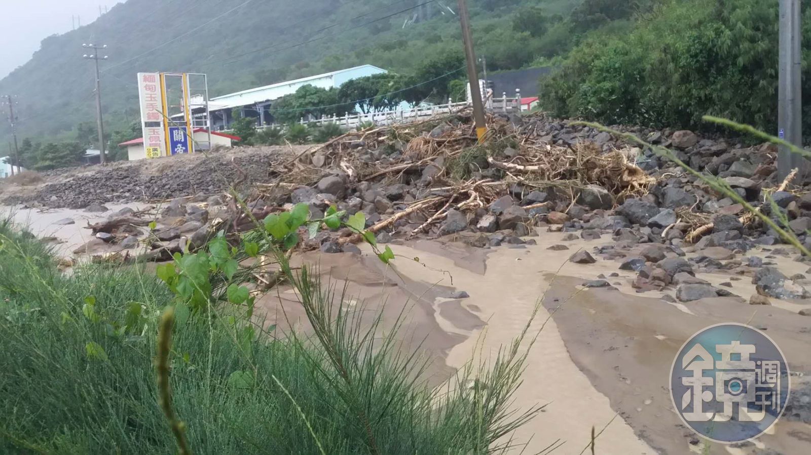 大量黃泥石塊堆積馬路上,人車無法通行,偏偏屏東政府卻宣布正常上班課,引發民怨。(翻攝網路)發布時間:2018.08.24 13:50 臺北時間