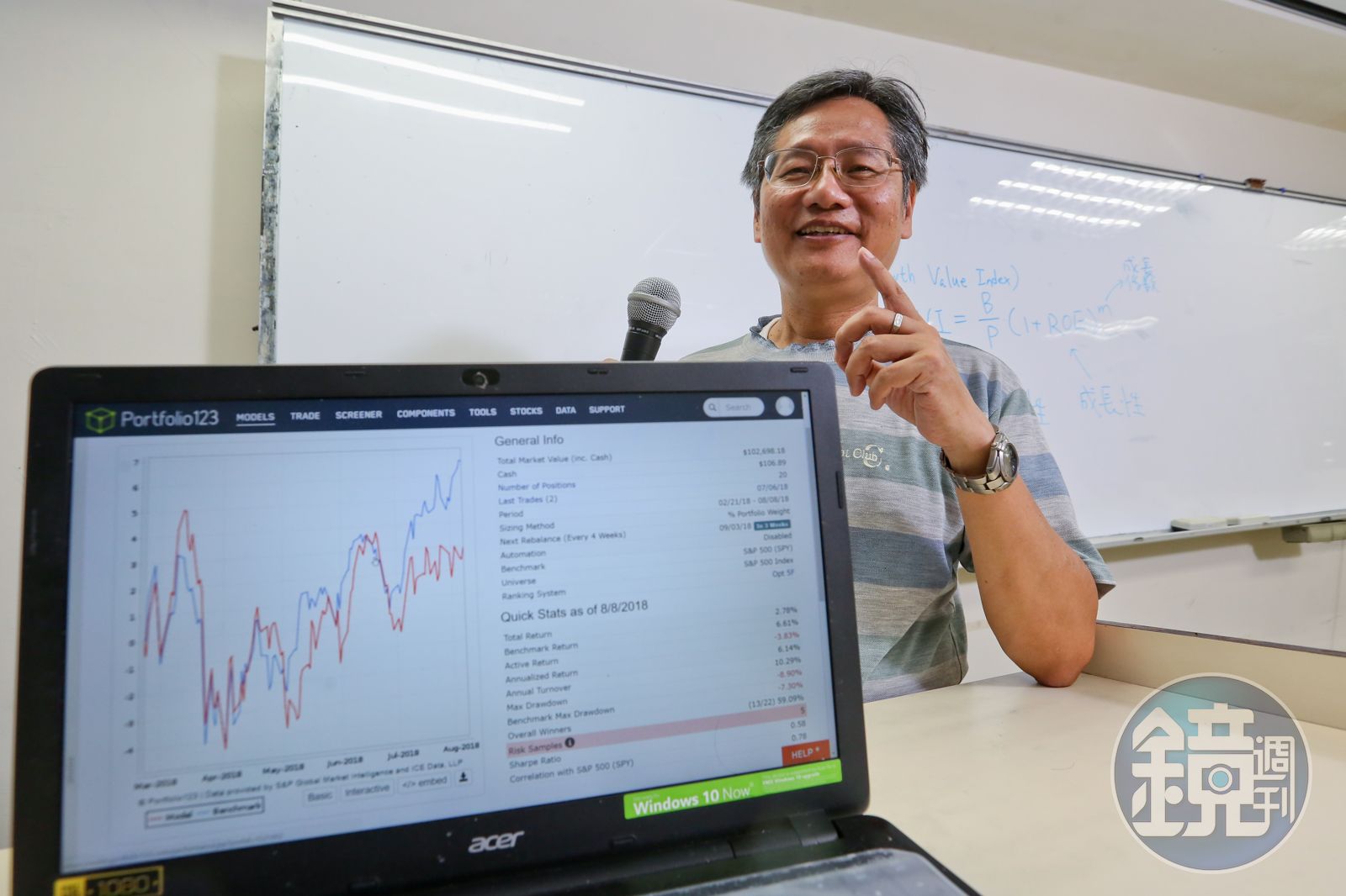 上述的5個選股因子,就像學測5科評分一樣,葉怡成用選優等生的邏輯挑選優質股,並且選股因子採不同權重,也可以選出不同的股票,葉怡成笑說,「學問是相通的,混泥土的成分包括砂、石、水、水泥等,以前我用這個方法設計特定強度的混泥土,現在我用它建置最強的投資組合。」