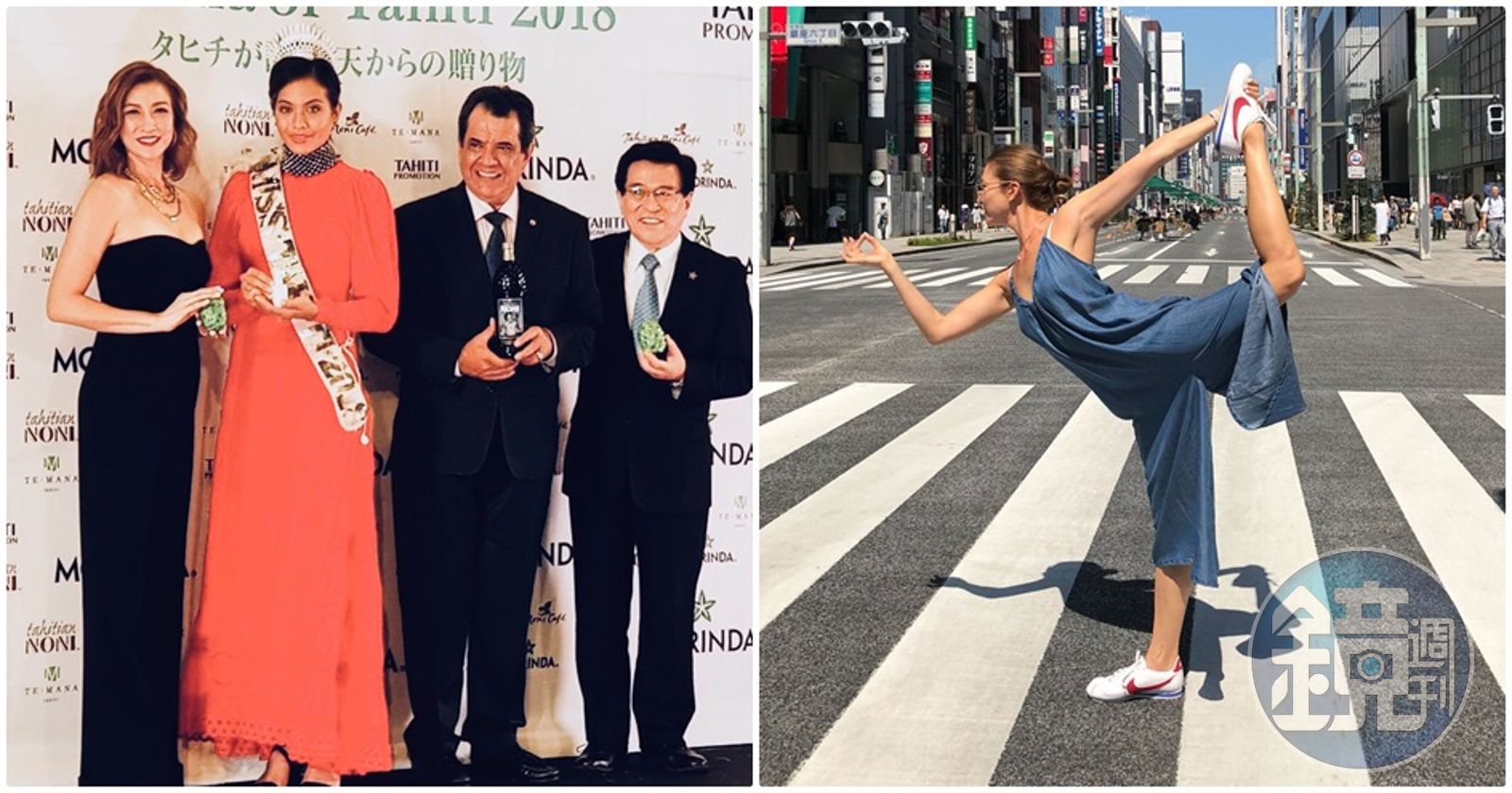 李詠嫻(左)受邀赴日本出席品牌活動。趁機幫家人採買的她,還在銀座街頭做起瑜伽伸展筋骨。(艾迪昇提供)發布時間:2018.09.07 16:26 臺北時間