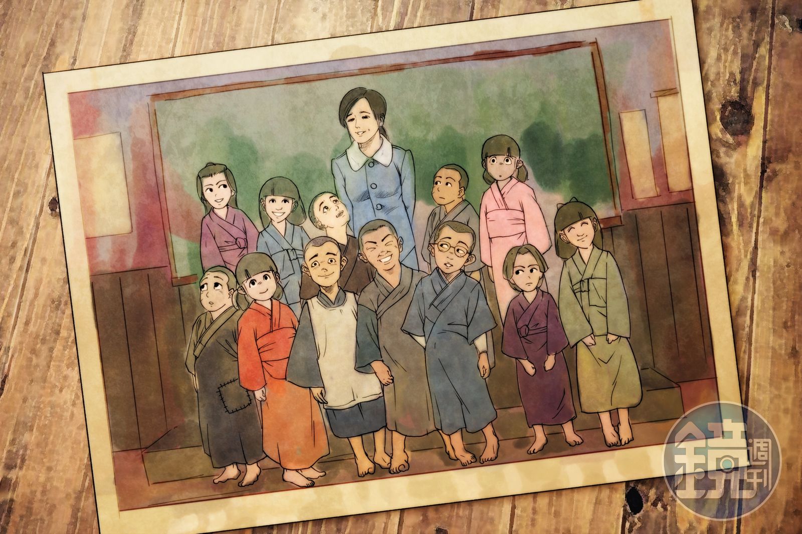 老師踩著戰前日本偏遠地方還算少見的腳踏車登場,「從雜貨店前騎腳踏車到學校要二、三十分鐘,不過關於女老師的流言像風一樣掃過,十五分鐘就傳遍全村。」