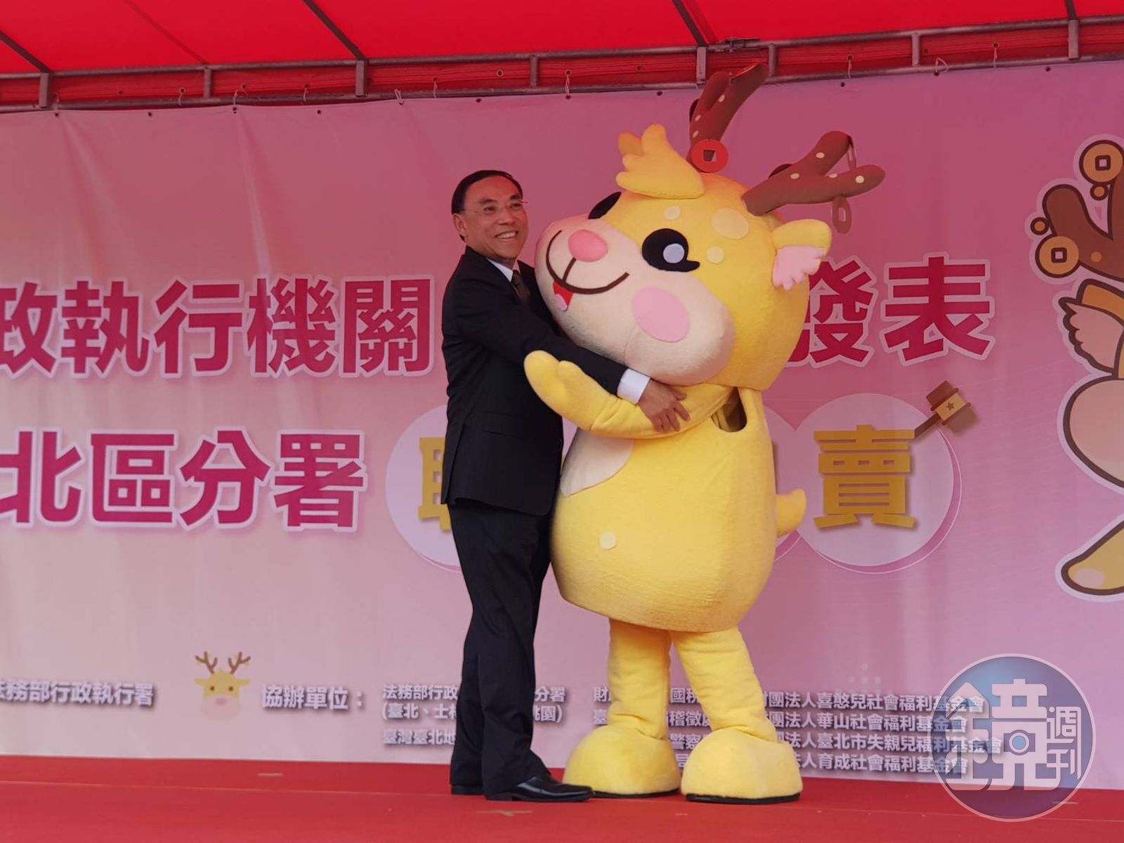 法務部長蔡清祥上台致詞時也說,「拍寶」是萌樣的小鹿玩偶,行政執行署以可愛、溫馨的吉祥物做連結,讓行政執行署的「公義」與「關懷」理念深植人心,主持人還逗趣地希望能讓初次亮相的「拍寶」與部長擁抱、親吻,蔡清祥也展現親和力地說「Yes,I do」,讓現場氣氛倍感溫馨。