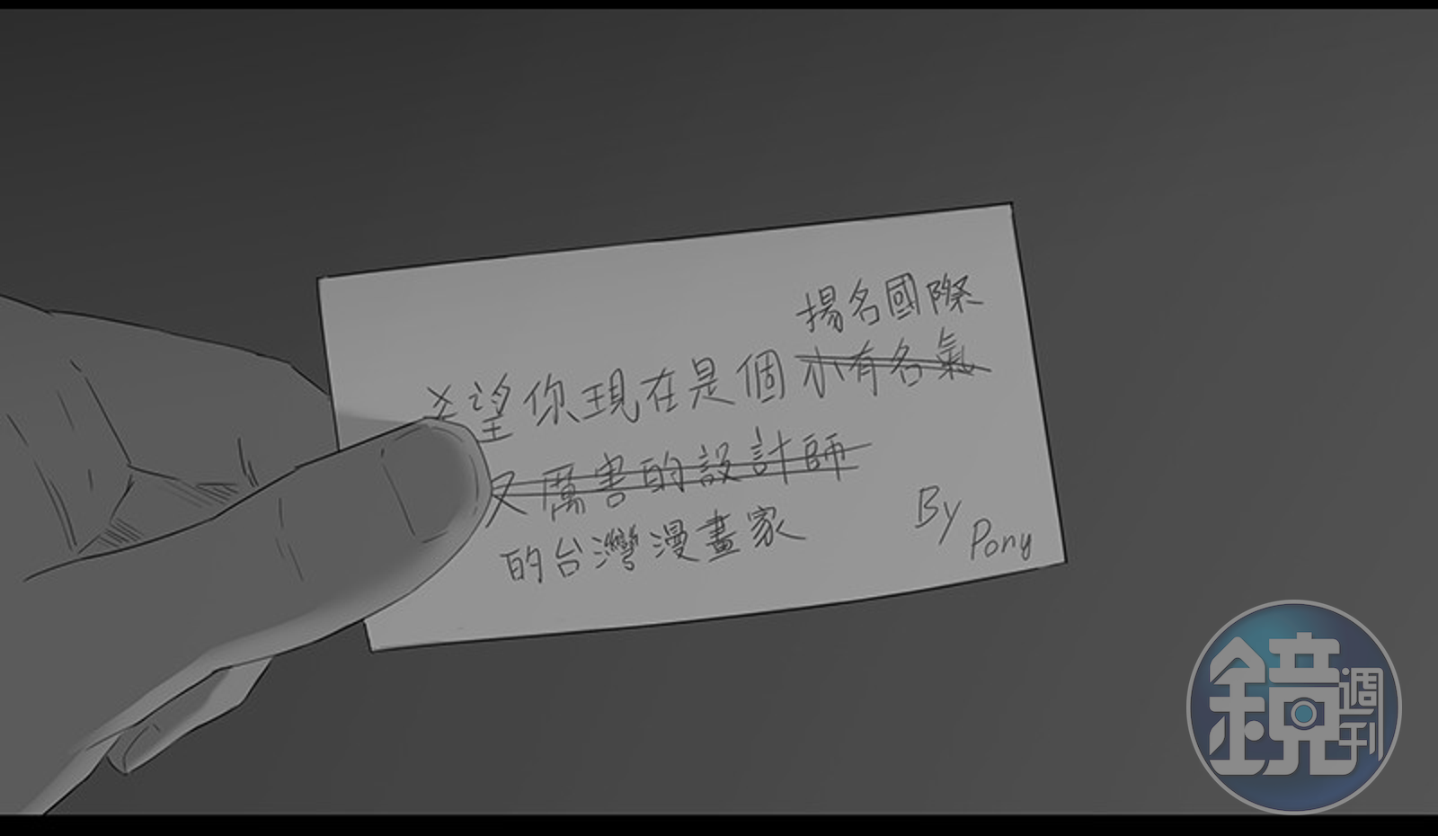 沒了健康,錢也沒賺到,礙於生活壓力,Pony又重回設計公司。所幸這次他沒有待太久,先是成為接案工作者,後來又在網路漫畫平台找到了圓夢機會。經過這一遭他變得成熟,與父親的感情也已修復。回顧這一切,他覺得都影響了現在的創作,但他也沒辦法說清這些經驗是如何應用在作品當中。