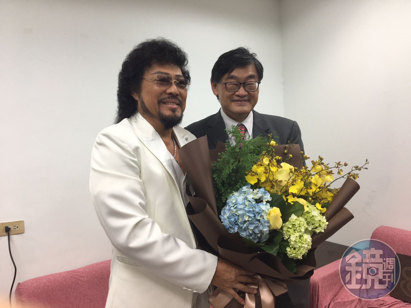 華視總經理莊豐嘉也特別前來獻花致意,兩人現場有說有笑,莊豐嘉說,「這階段只是暫時的結束,不是就此道別。」未來還希望再與張菲合作,張菲則開玩笑說:「希望回來時莊總還在。」