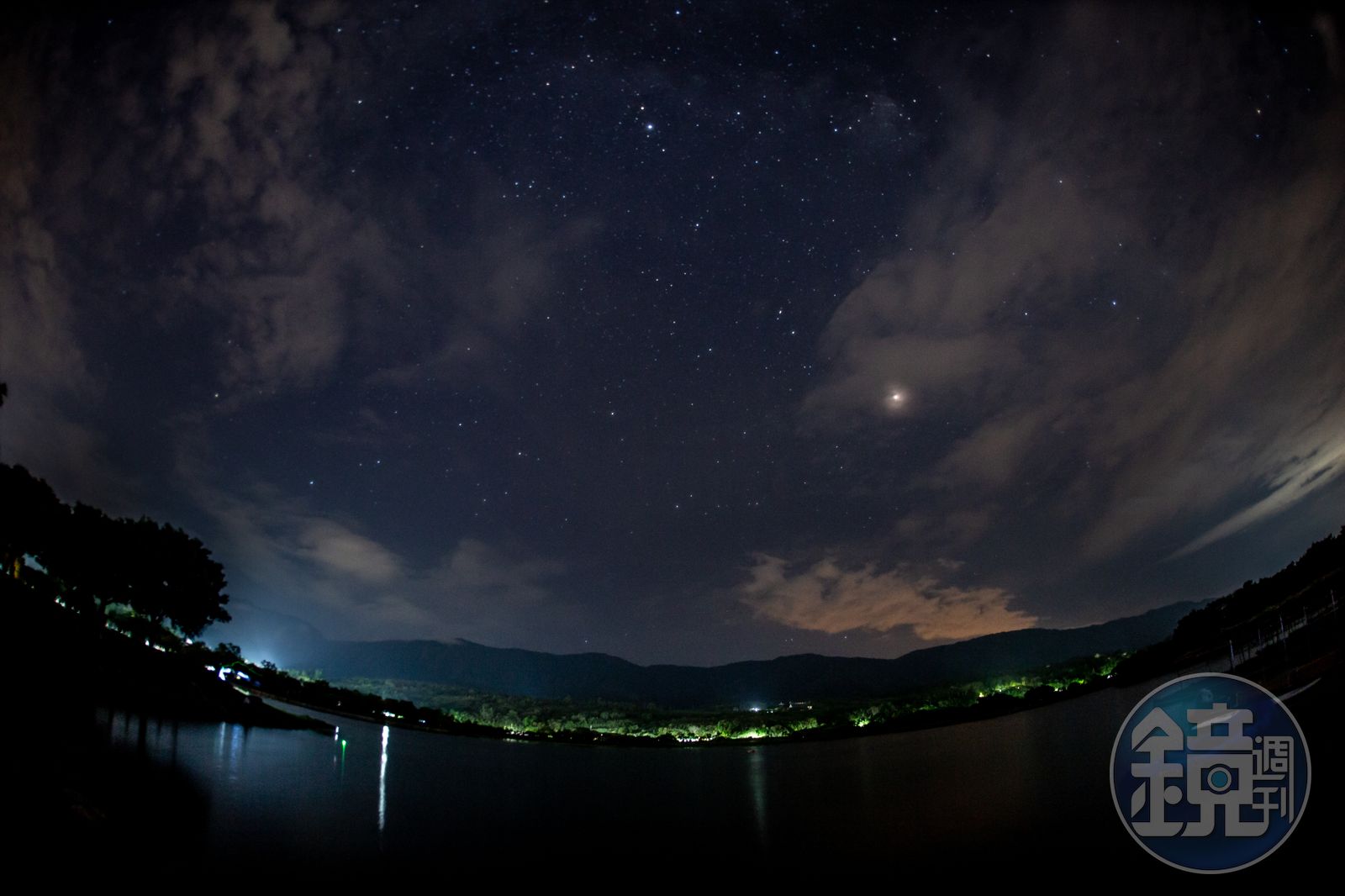 大坡池,落在海岸山脈和中央山脈之間。入夜,起伏的山屏在天際暈染出潑墨畫,星光閃爍的夜空,有種留白的空靈感。銀河、星雲慢慢浮現,水鏡也映照著天光雲影,火金姑提燈低飛,緩緩升向空中。