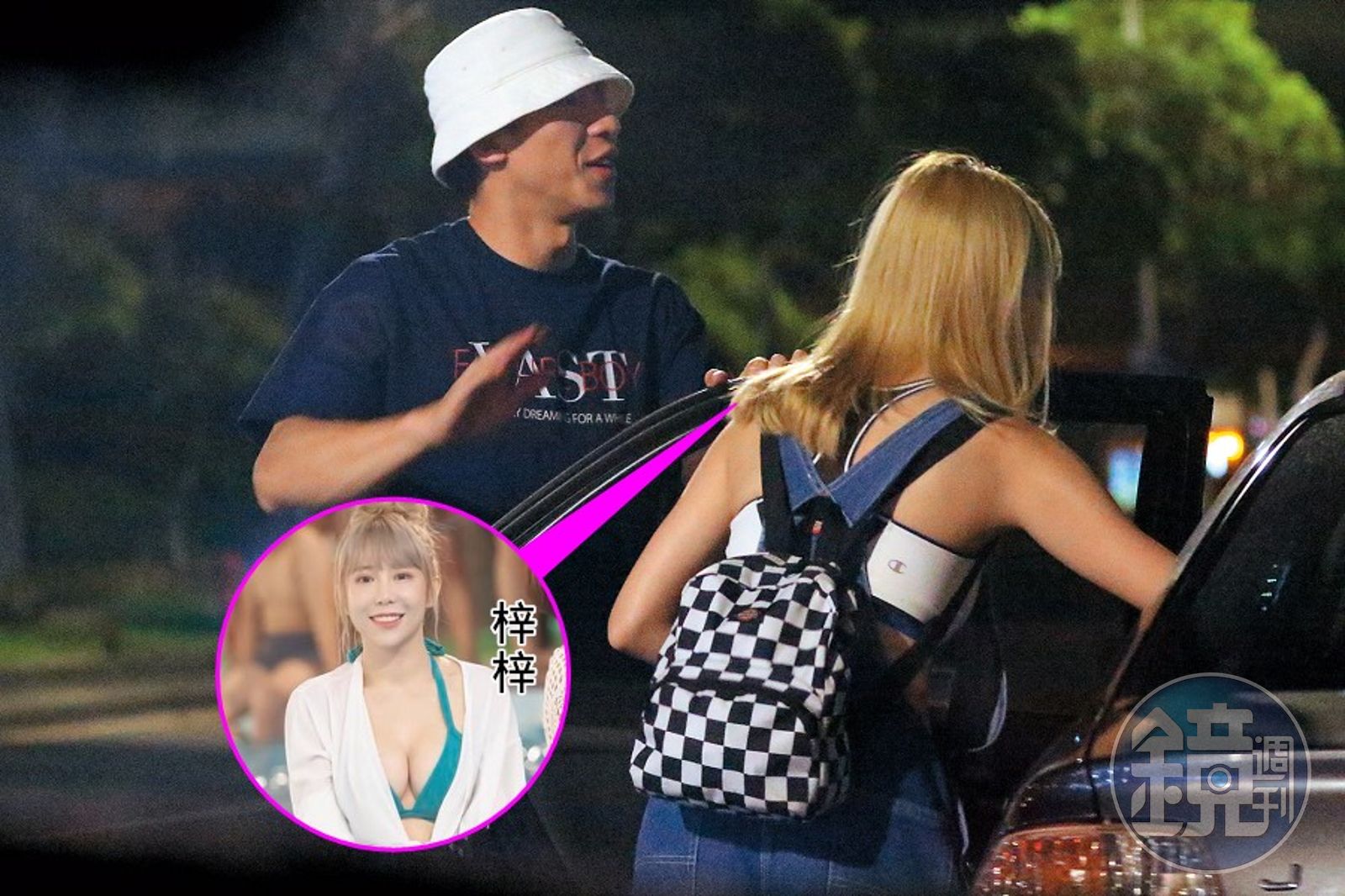 約過了1小時,梓梓跟經紀人從電視台走出,直直往漁夫帽男邁進,只見她熟練的將包包放進後座,鑽進副駕駛座,隨後漁夫帽男先開車將經紀人送回家,接著往新北市三重方向開,最後和梓梓走進巷底一間公寓,看似熟門熟路,感覺像是小倆口的同居愛巢,然後整晚未外出。