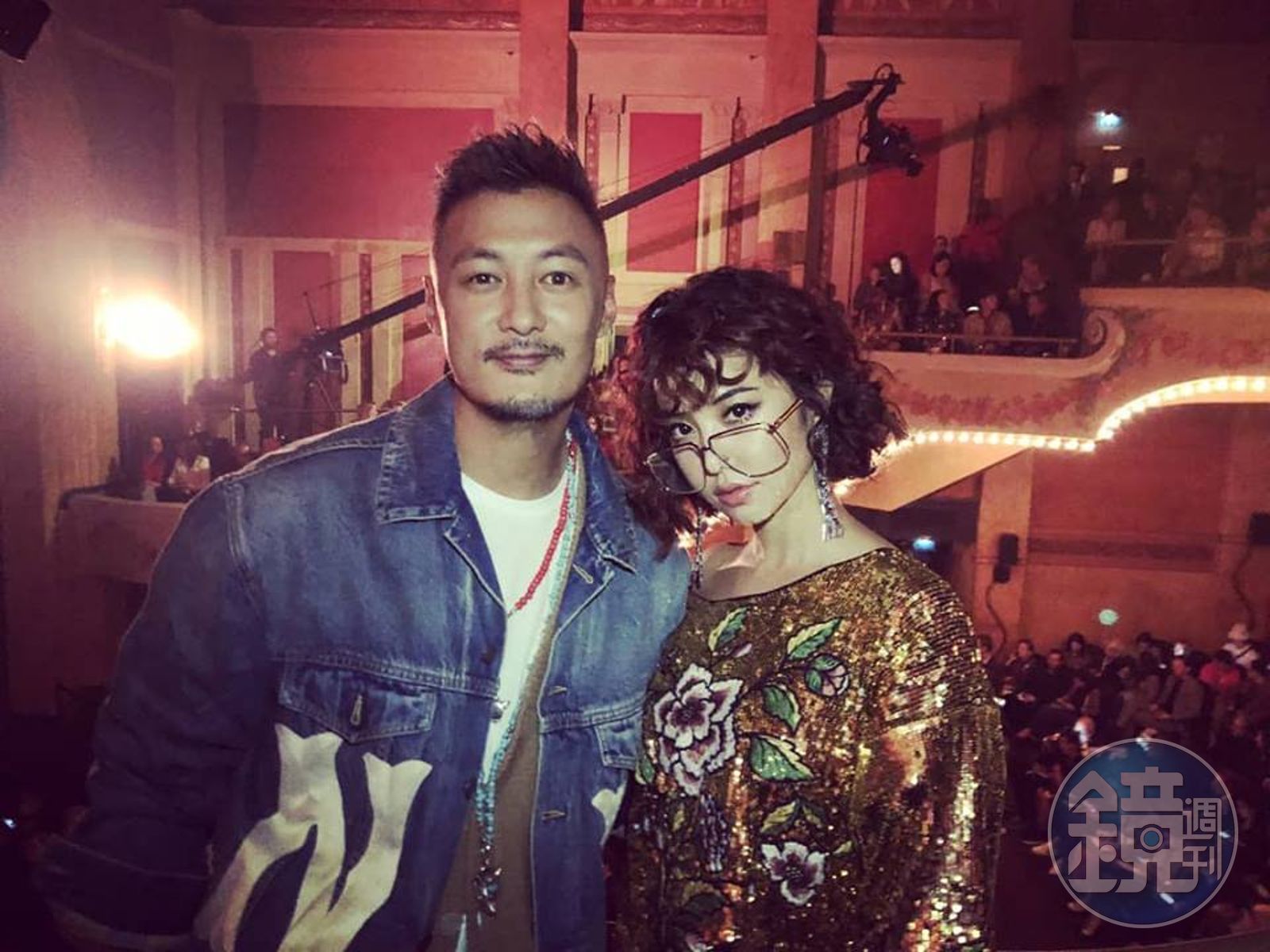 蔡依林的80年代復古造型讓她很有感,接連在個人網頁PO照分享。(翻攝自蔡依林臉書)蔡依林跟余文樂在位於巴黎劇場舉辦的GUCCI時尚秀一起合照並寫下「男神駕到 合拍這樣」,不同於余文樂的牛仔外套一派俐落,Jolin的復古時尚整個金光閃閃,卷毛配上大框眼鏡、金色上衣還繡著花朵,整個人氣場超強大。