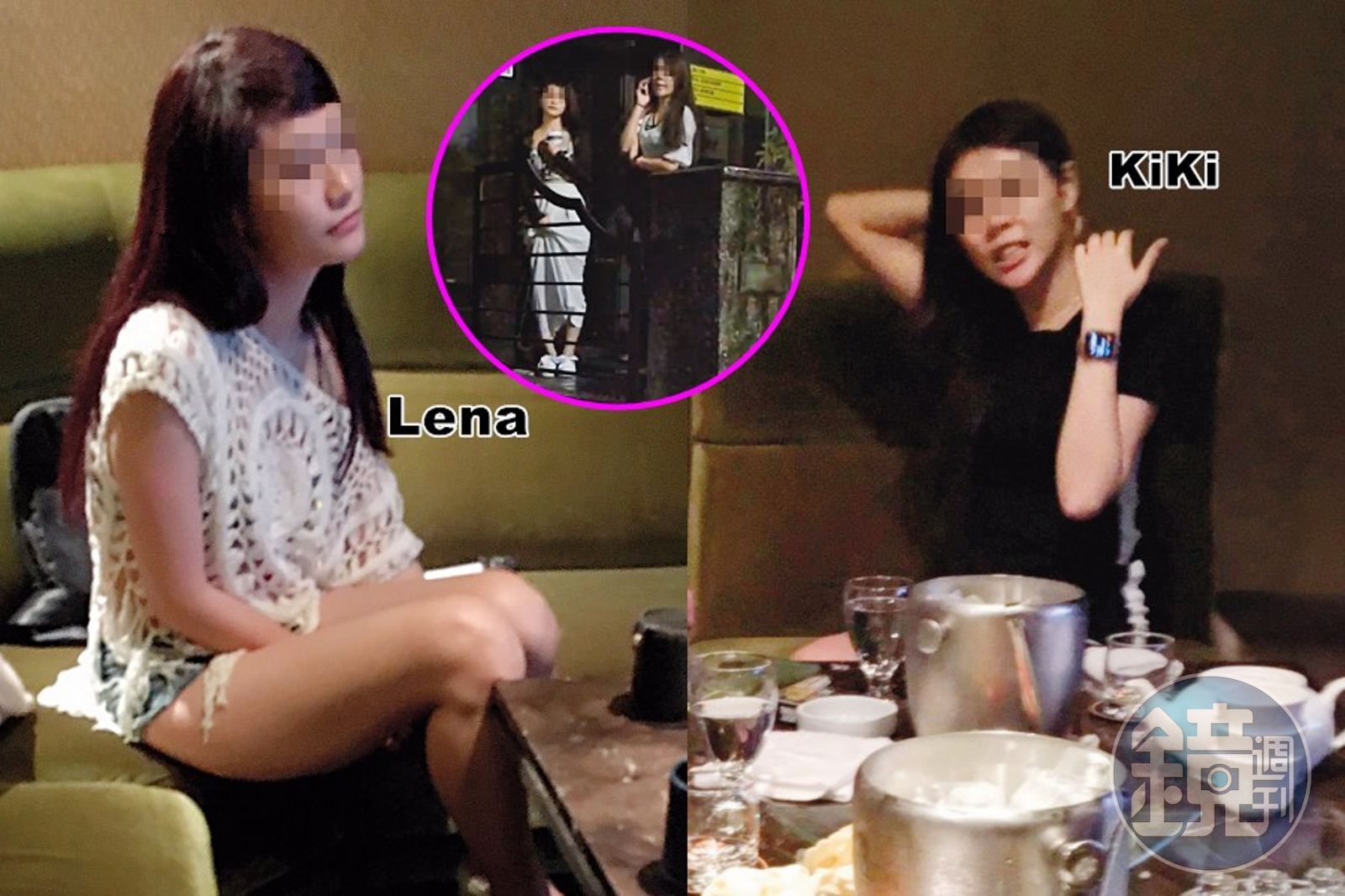 KiKi說,她心想反正也沒事,就找了Lena一同前往,她們到了C'est si bon 後,不久,店家就透過電話告訴她們「客戶要到了,快去門口等。」根據KiKi轉述當晚情況,「我們就是在包廂內吃飯聊天,一個下巴留山羊鬍的先生感覺像是主人家,全場按捺的很好,還有一個頭髮尖尖的男子,他很少開口說話,但我不認得他是誰。」