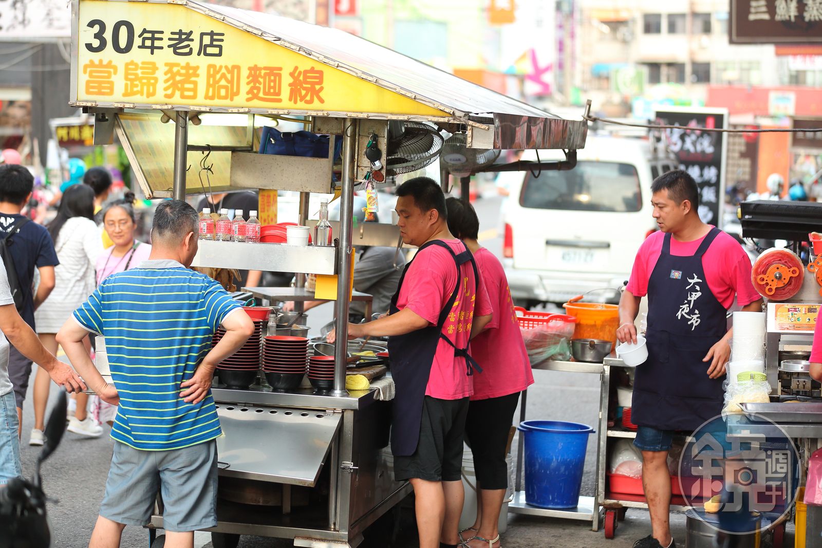 比起影響一時的口蹄疫,夜市攤販更苦的是沒有遮風避雨的店面。1997年修憲「凍省」後,「台灣省攤販管理規則」也隨之廢止,攤販許可證全失效,大甲夜市討生活的人們,都遵守警察宣導,下午5點以後才能把東西全部搬出來,收攤後要收得一乾二淨,每天都要上演「生財工具的大搬風」。
